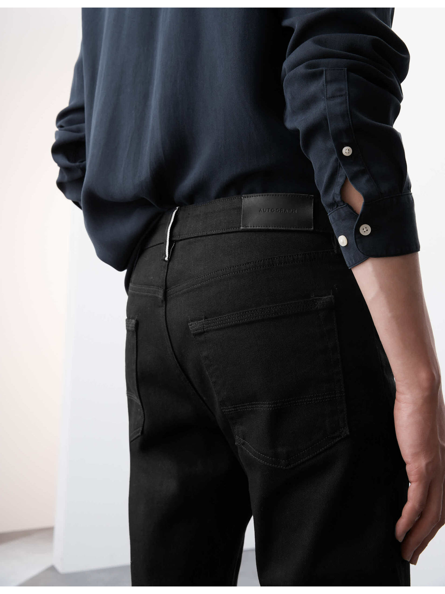 Strečové džíny v japonském stylu, úzký střih Marks & Spencer námořnická modrá