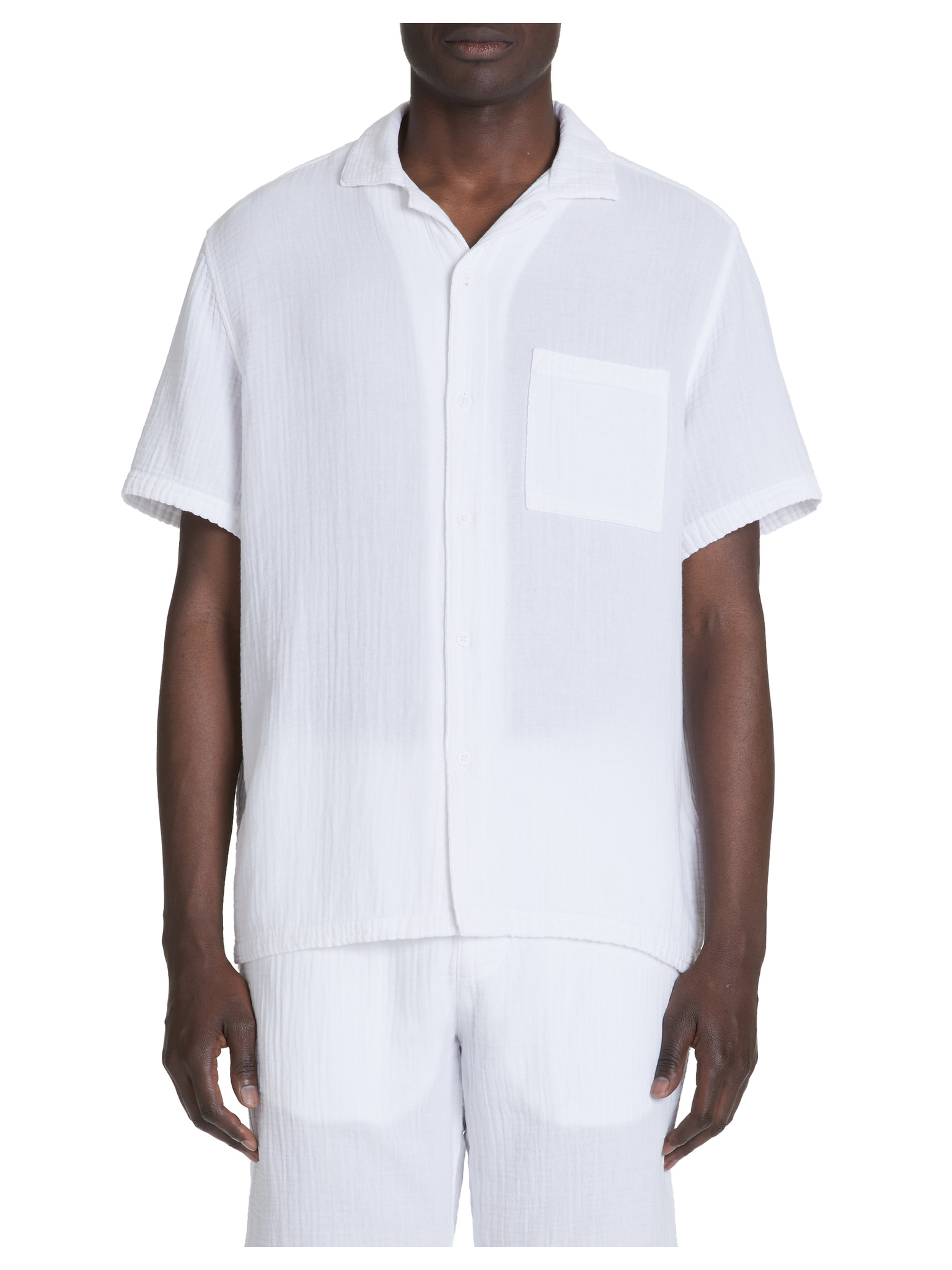 Pánská košile s krátkým rukávem a kubánským límcem bílá Ombre Clothing