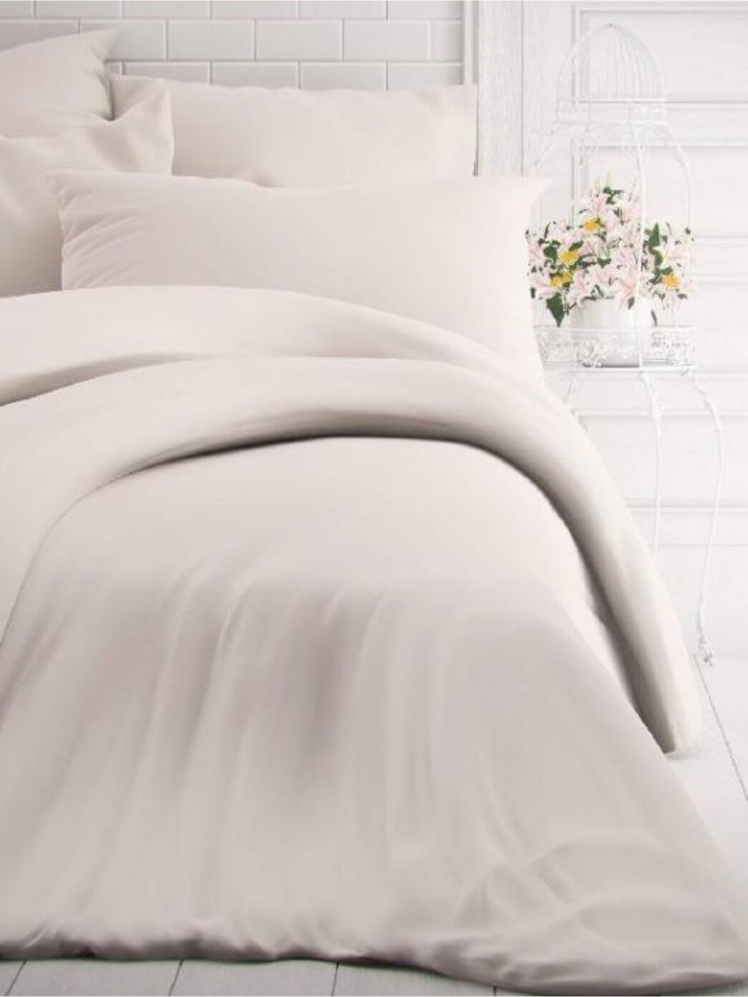 Saténové francouzské povlečení LUXURY COLLECTION 1+2, 200x200, 70x90cm smetanové