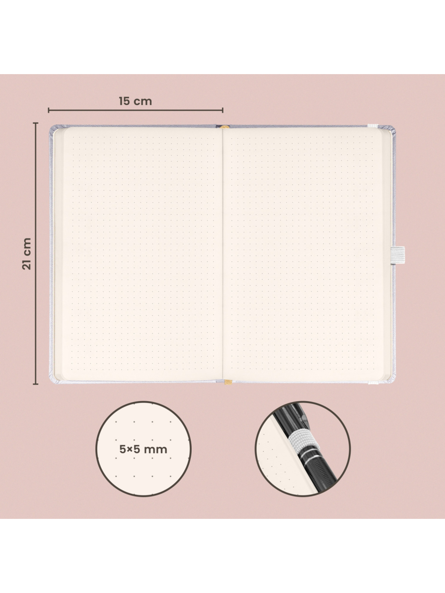 NOTIQUE Notes Lila, tečkovaný, 13 x 21 cm