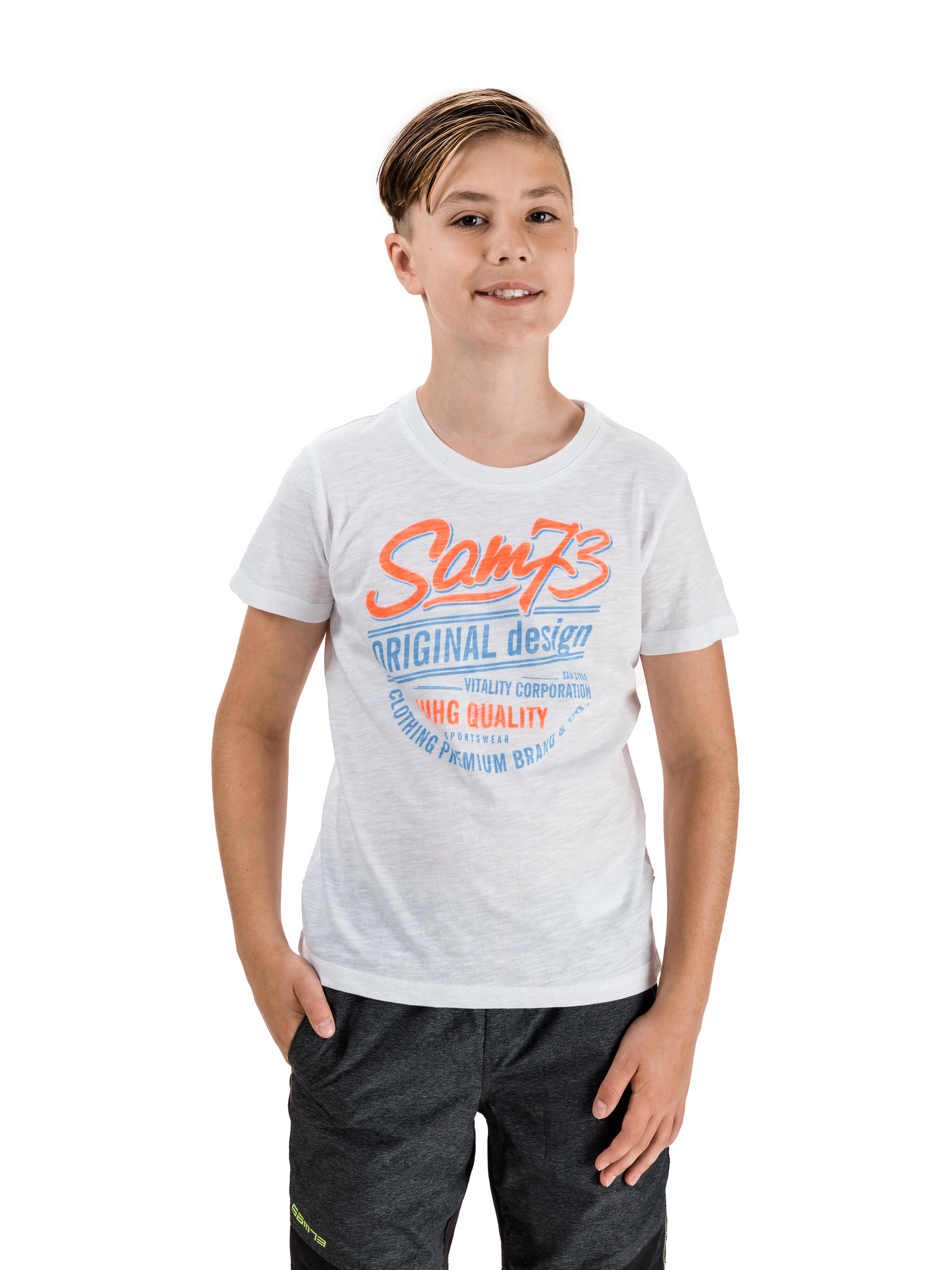 Šedo-modré klučičí tričko s nápisem SAM 73