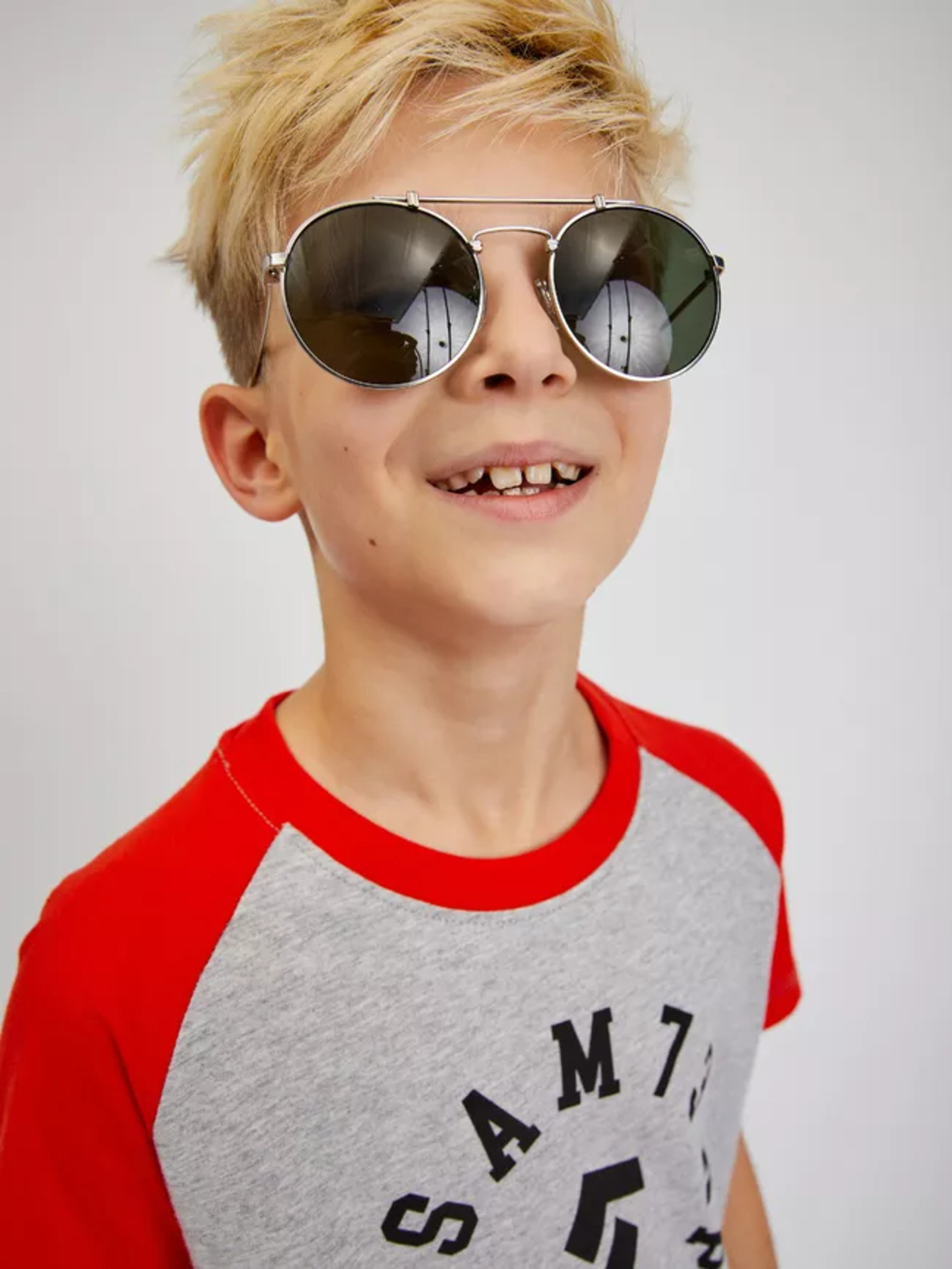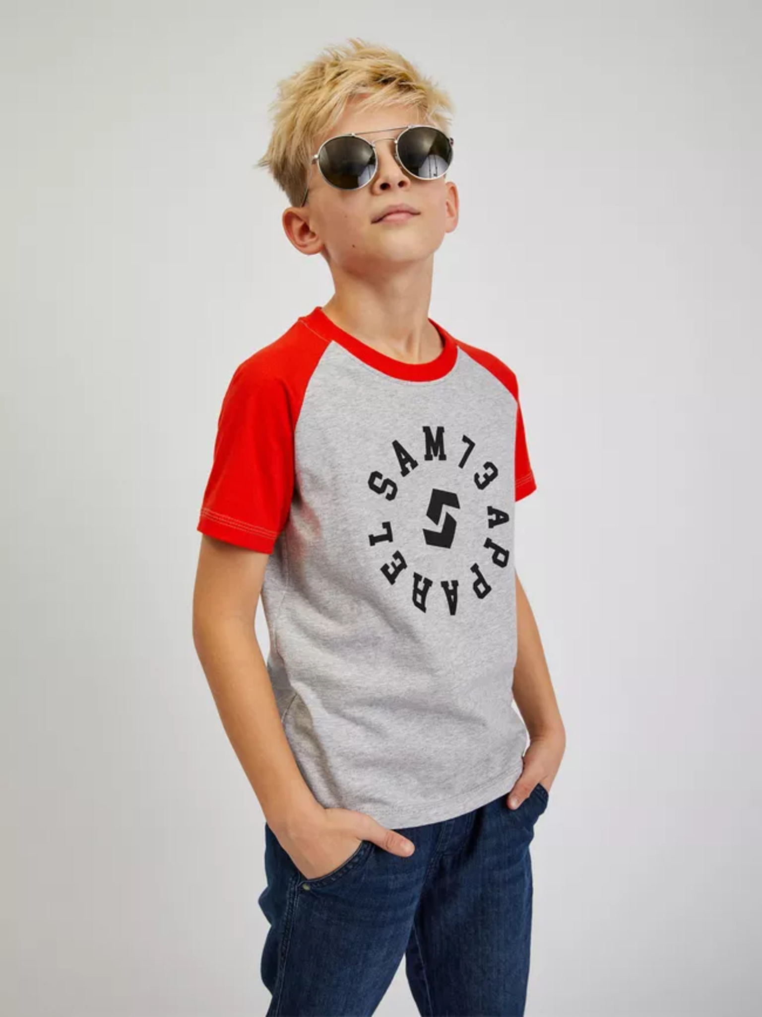 Šedo-modré klučičí tričko s nápisem SAM 73