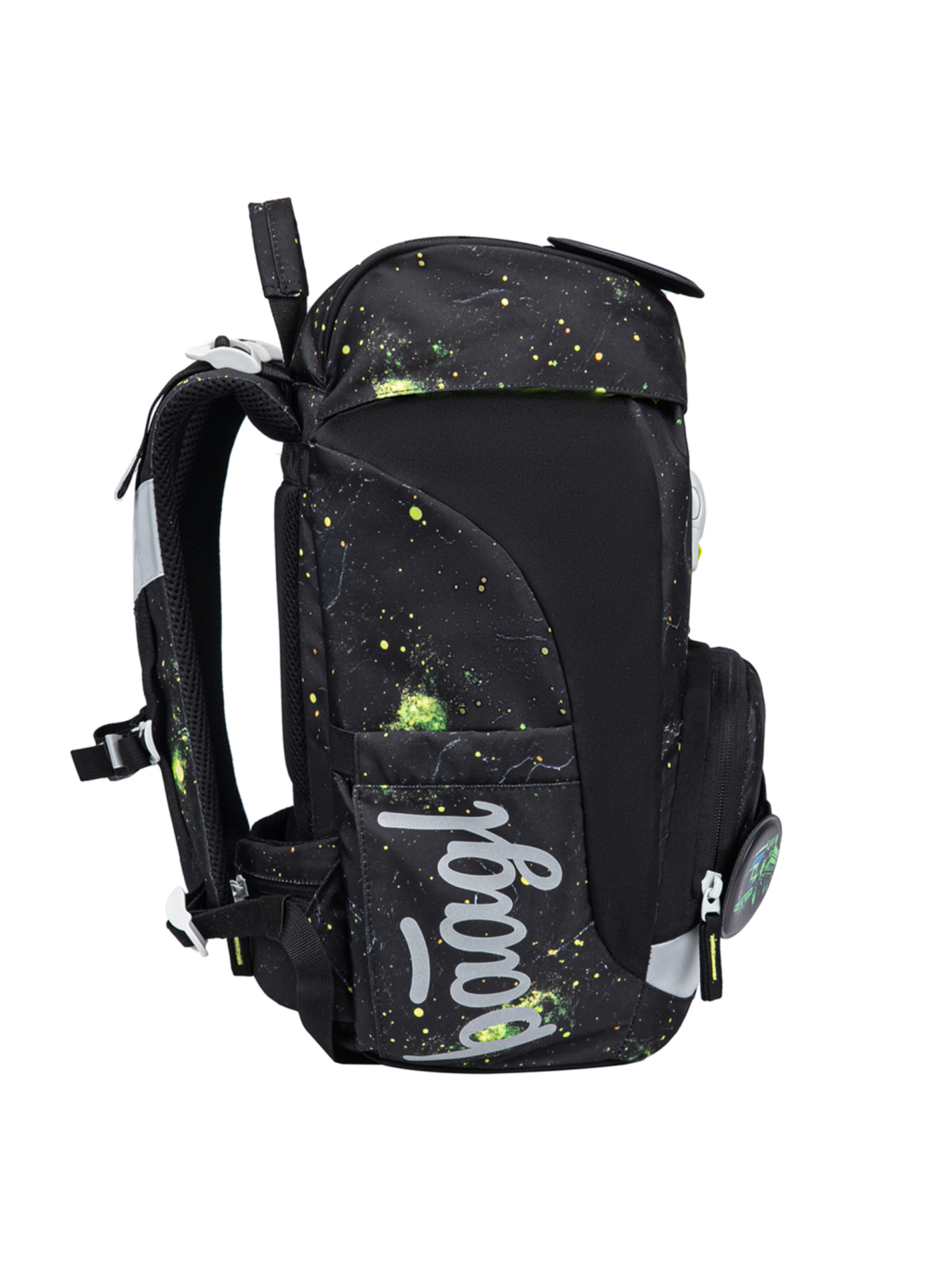 • Batoh vyrobený z recyklovaného a voděodolného materiálu je opatřen řadou reflexních prvků pro maximální bezpečnost dítěte i za snížené viditelnosti.