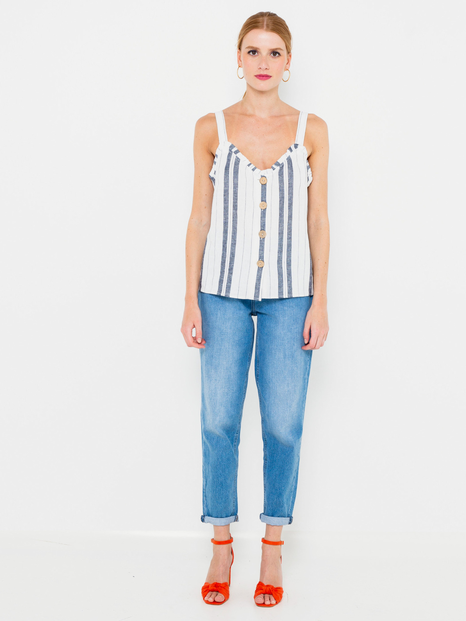 Oranžový top s krajkou CAMAIEU