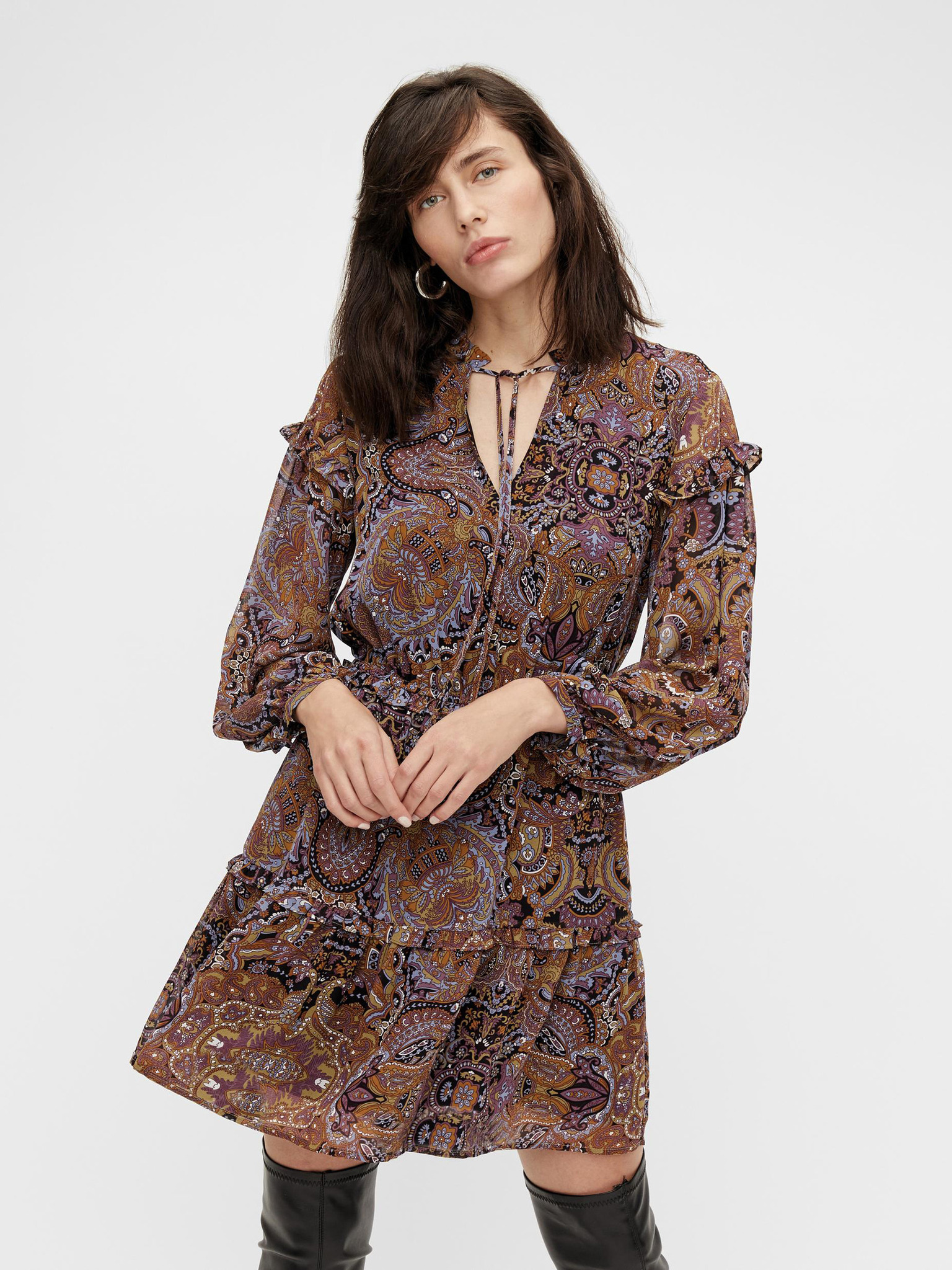 Oranžovo-hnědé dámské vzorované šaty Moodo