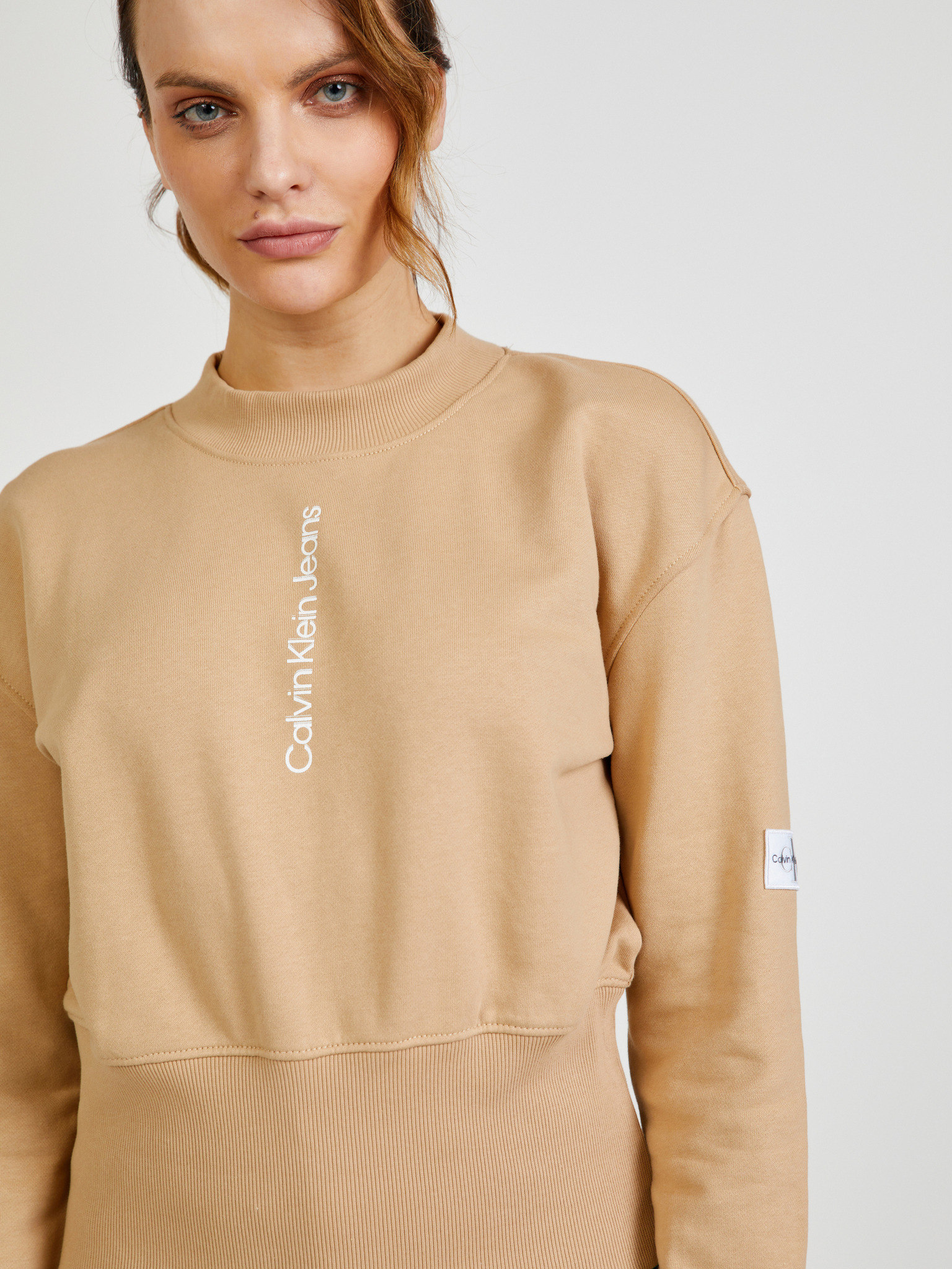 Mikina s širokým rolovákem pískové barvy Moodo