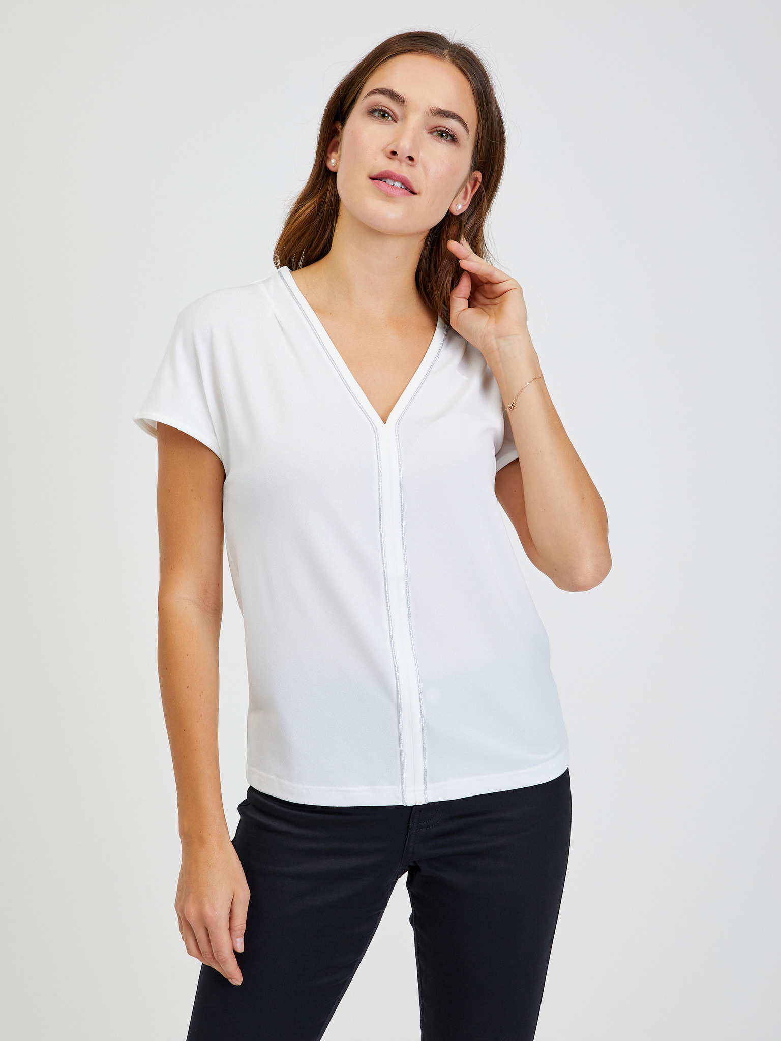 Bílé basic triko s véčkovým výstřihem