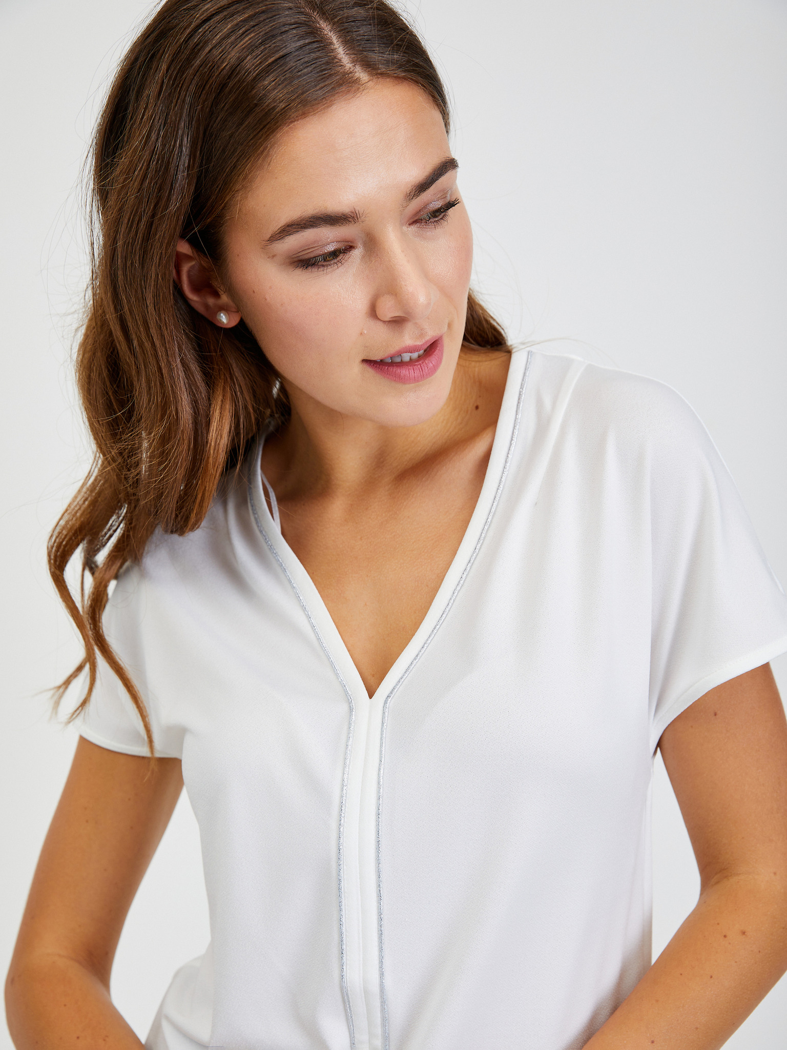 Dámské tričko se zdobeným výstřihem – bílé