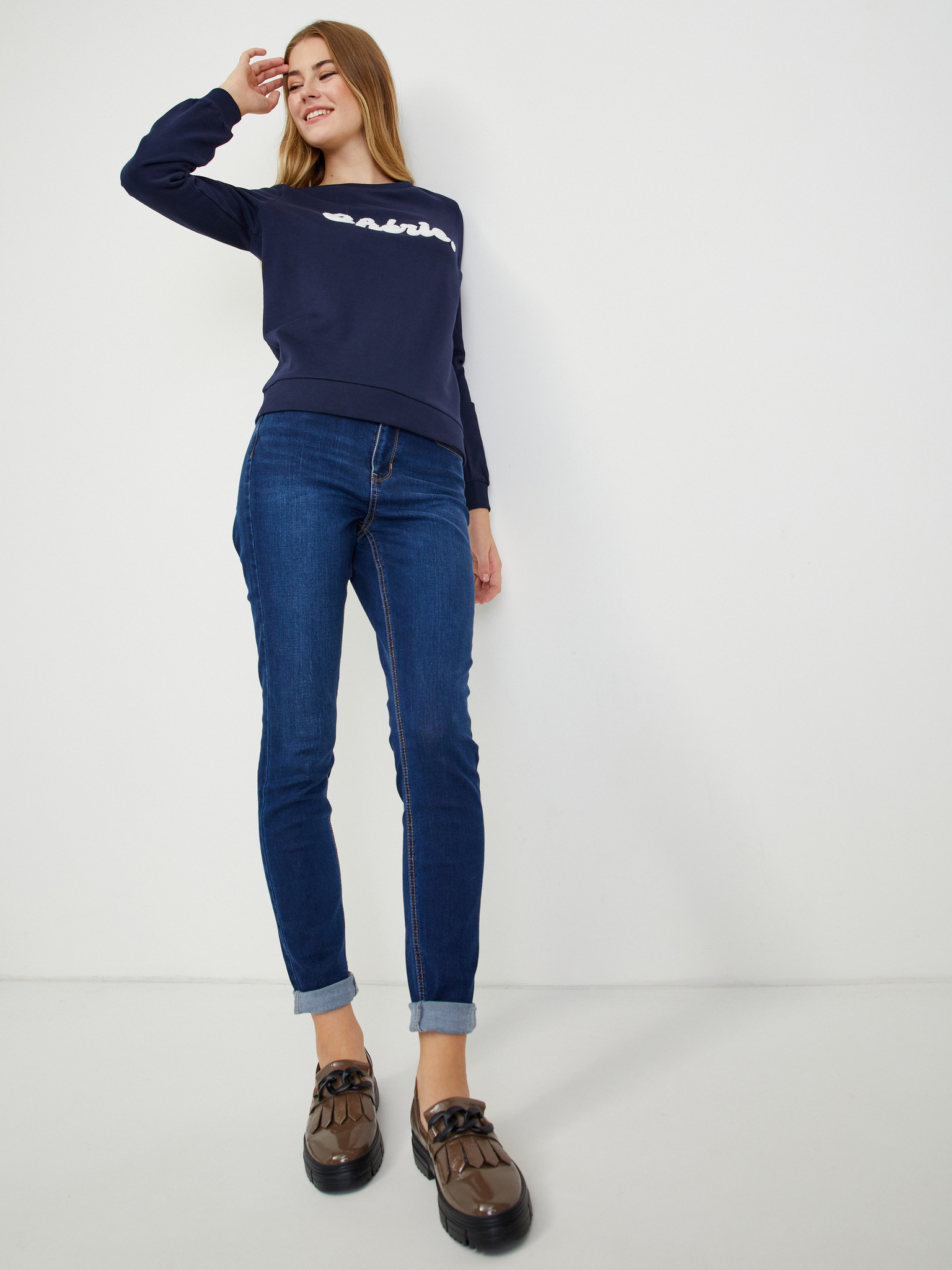 Tmavě modré dámské tričko s dlouhým rukávem ORSAY
