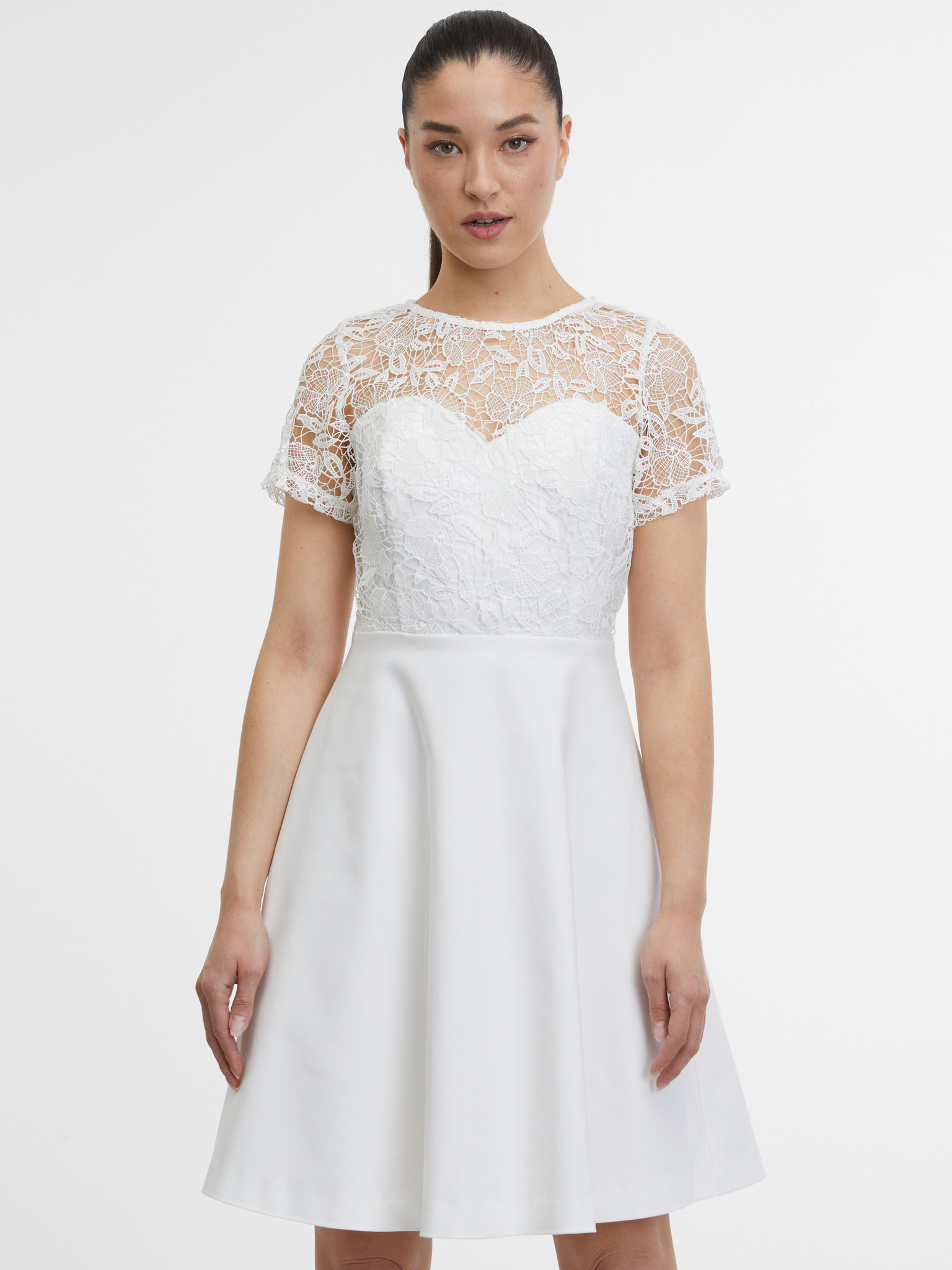 Bílé vzorované dámské šaty ke kolenům ORSAY