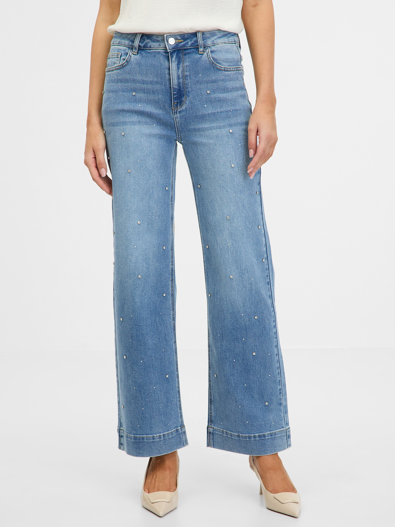 Džíny se širokými nohavicemi světle modré Moodo