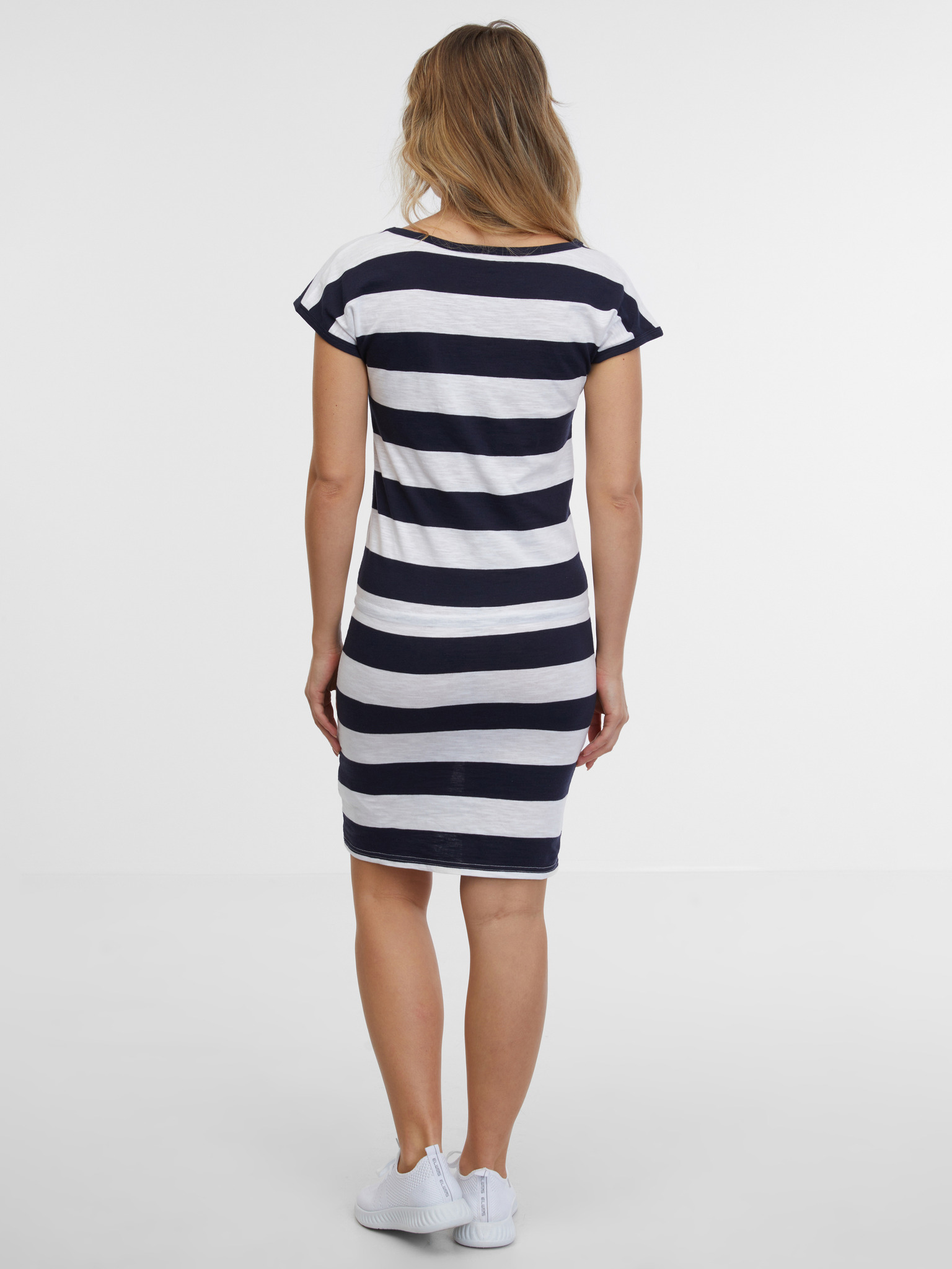 Bílo-modré dámské pruhované šaty SAM 73 Reyna