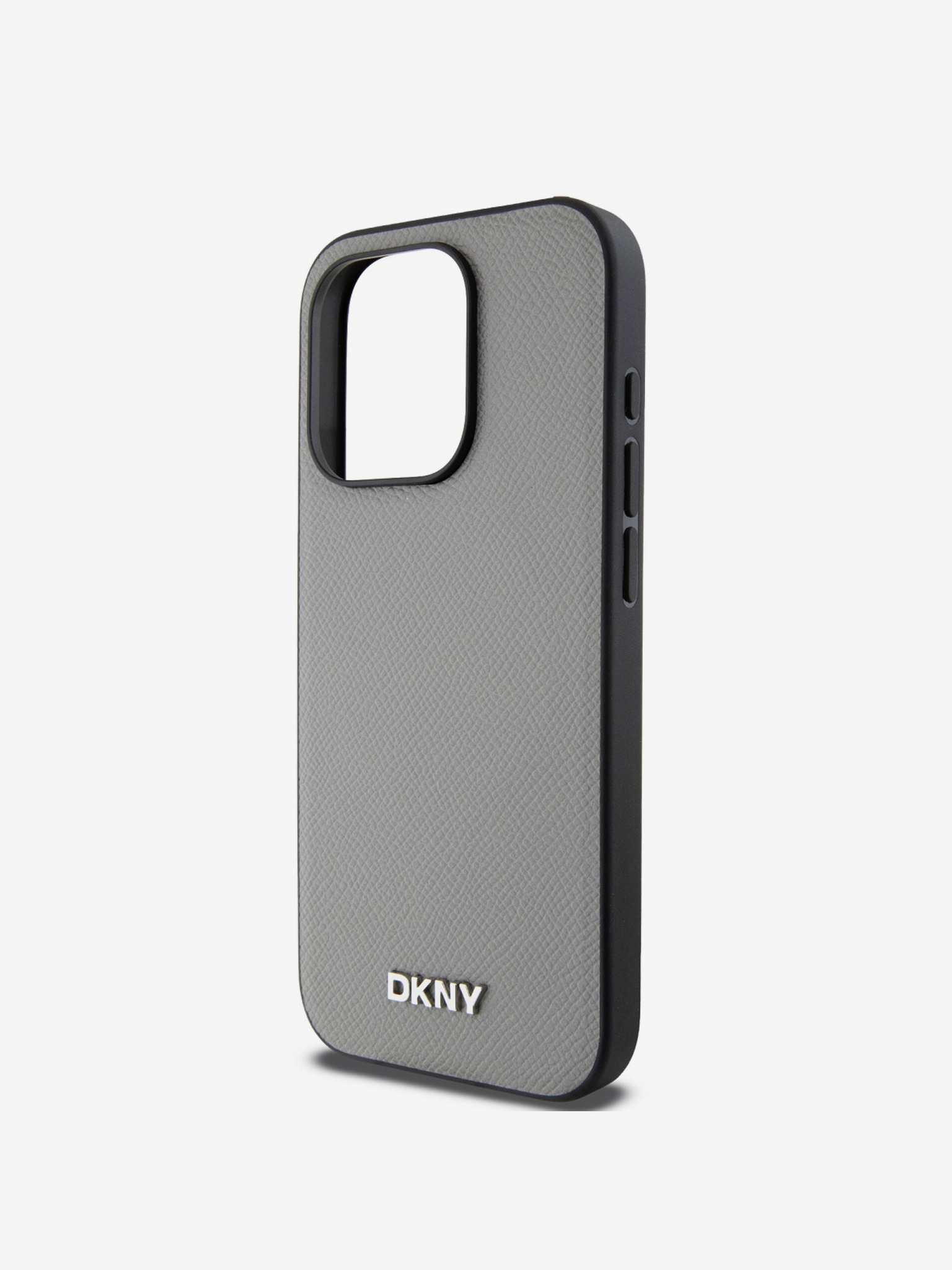 PU Leather Silver Metal Logo Magsafe Zadní Kryt pro iPhone 15 Pro Max Grey DKNY