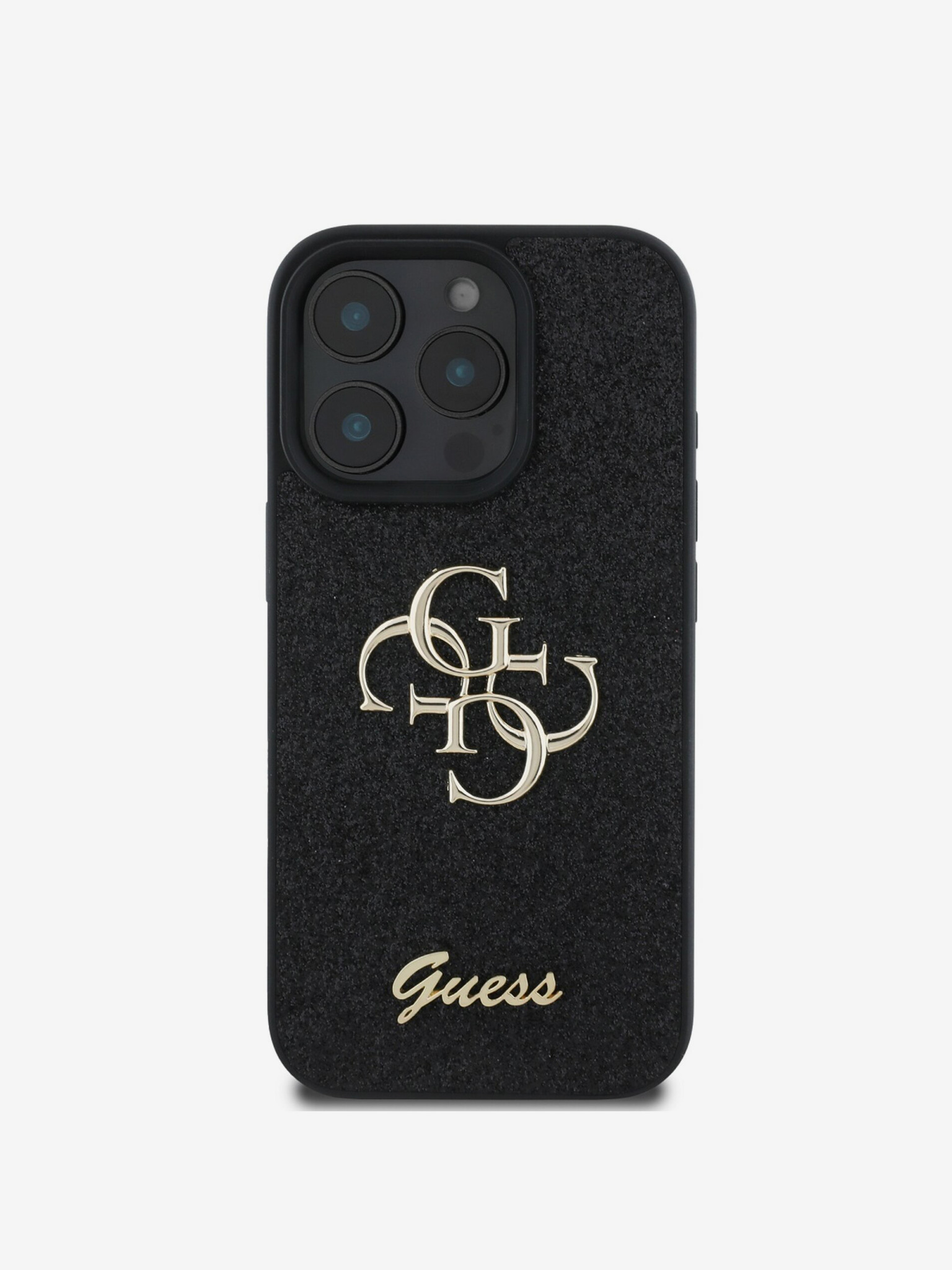Guess IML Glitter Magnolia and Triangle Logo MagSafe Zadní Kryt pro iPhone 16 Pro Max Black