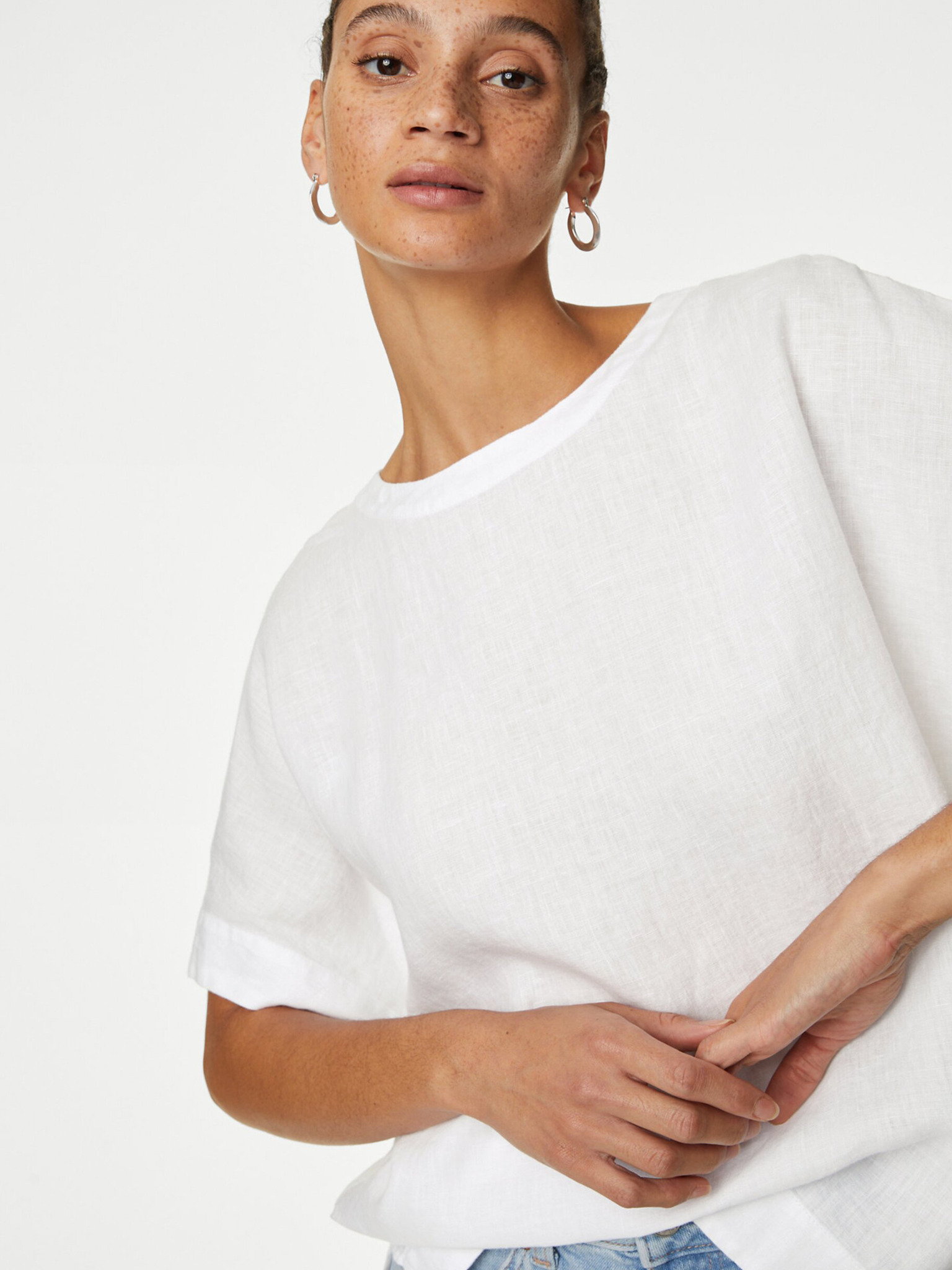 Bílý top se stahováním na rukávech