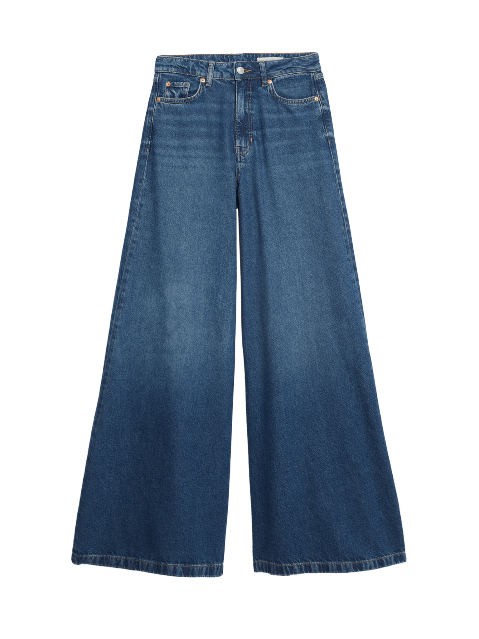 Džíny s vysokým pasem a širokými nohavicemi Marks & Spencer námořnická modrá