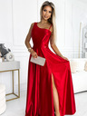 Krajkové, elegantní dlouhé šaty s výstřihem a rozparkem u nohavic - červené Numoco AMBER
