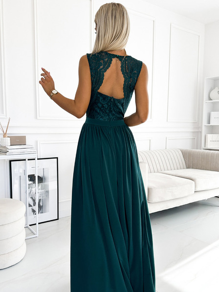 Dlouhé šaty s výstřihem a zavazováním - zelená Numoco JUSTINE