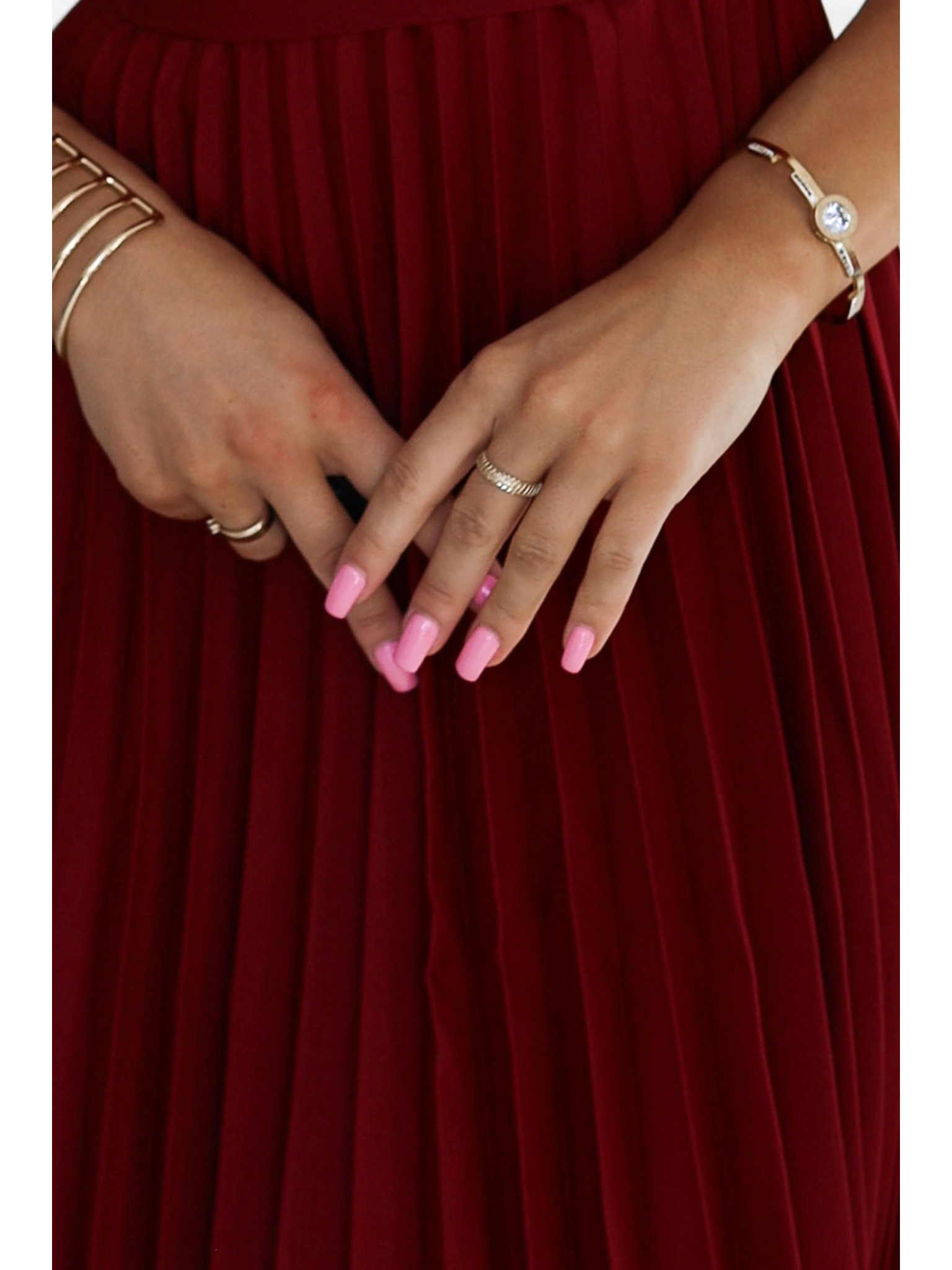 Třpytivé dlouhé šaty s výstřihem - Vínová barva Numoco CRYSTAL
