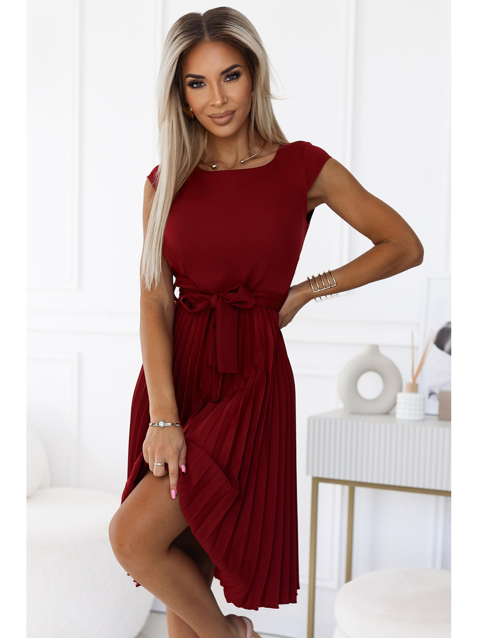 Šaty se širokým páskem - burgundské barvy Numoco