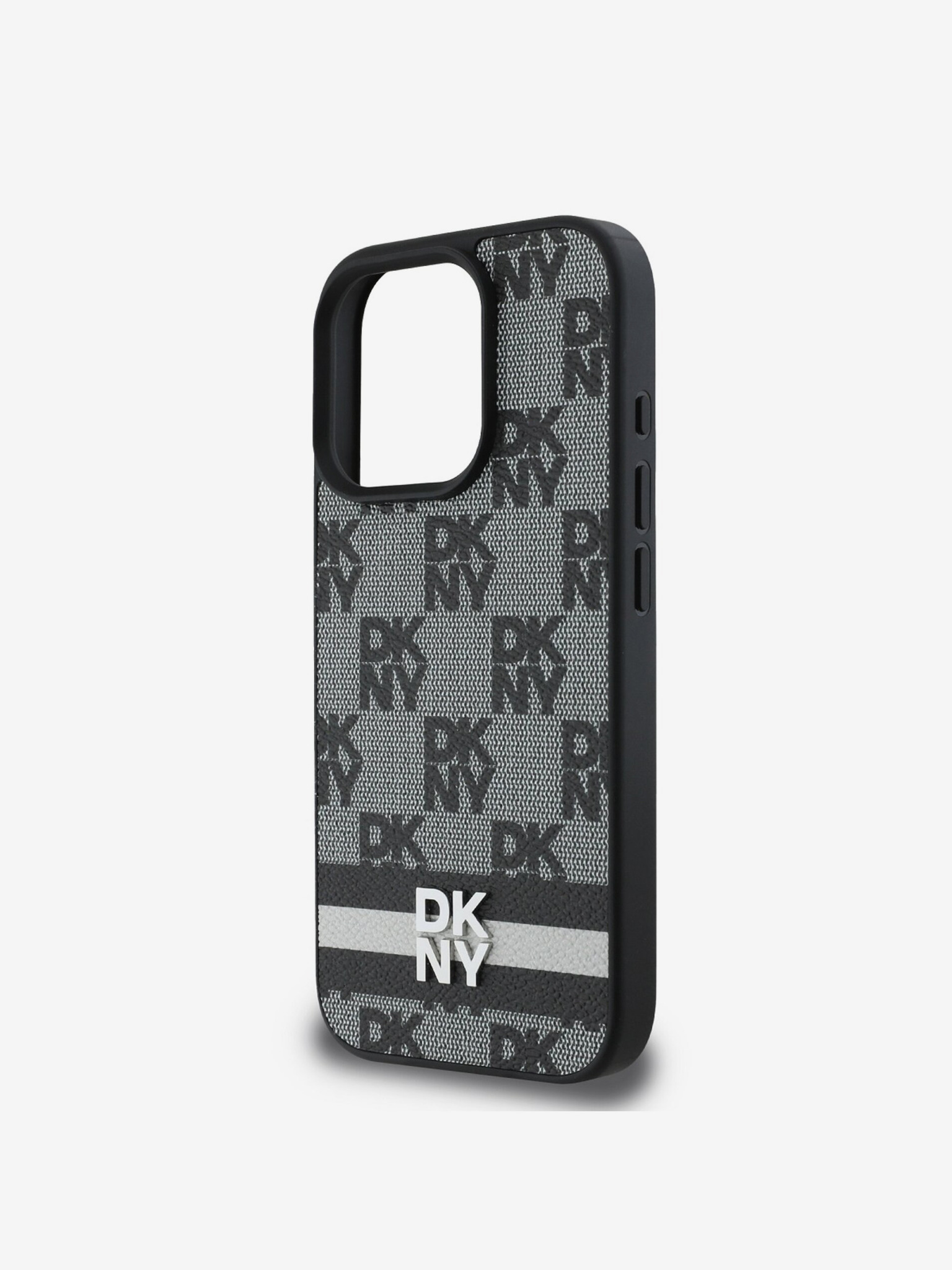DKNY PU Leather Repeat Pattern Bottom Stripe MagSafe Zadní Kryt pro iPhone 16 Pro Black