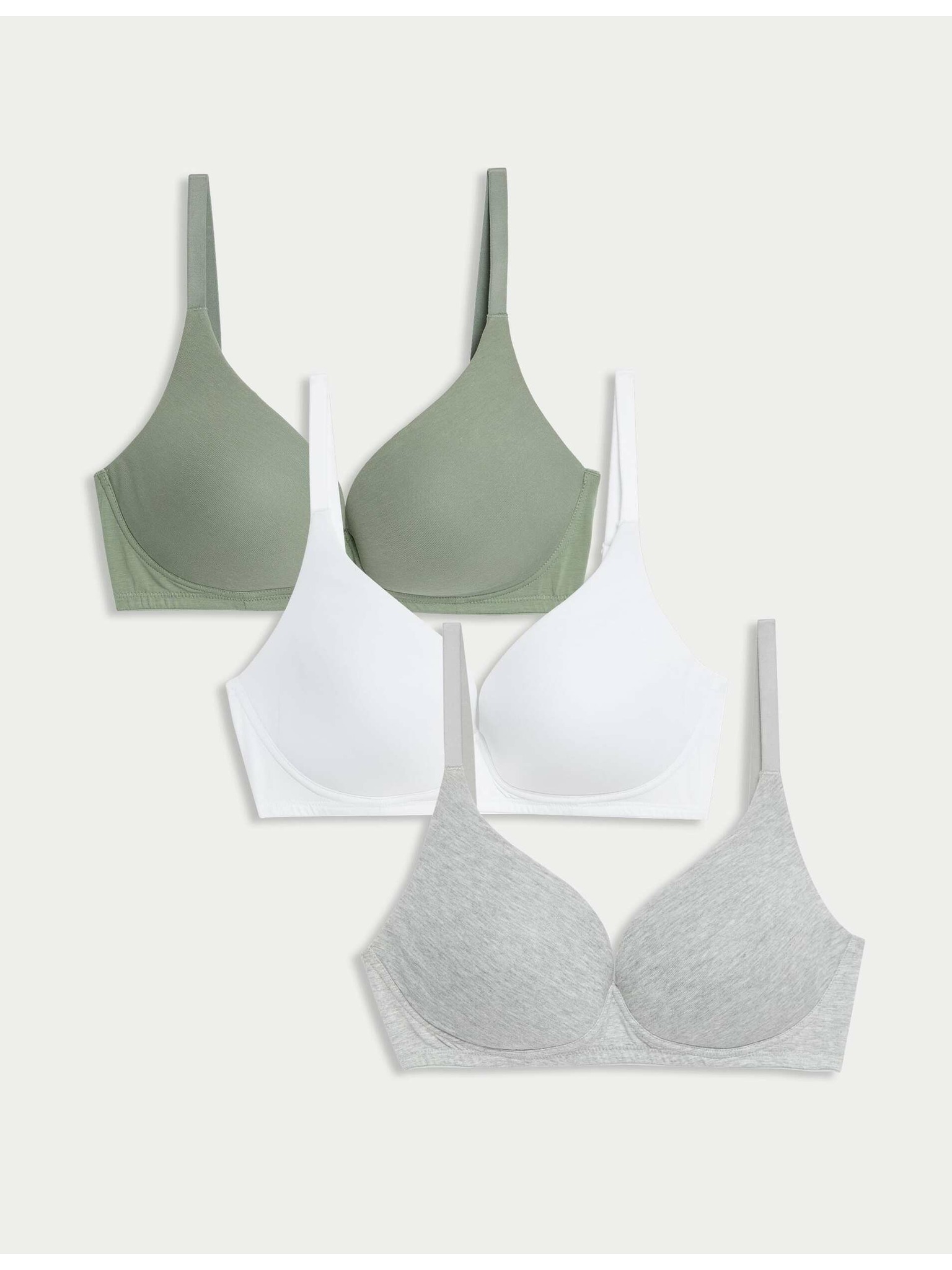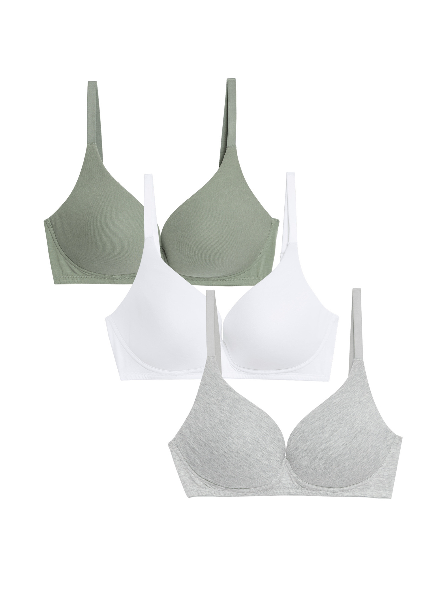 Push-up bavlněné podprsenky s kosticemi, 3 ks, vel. A–E Marks & Spencer zelená
