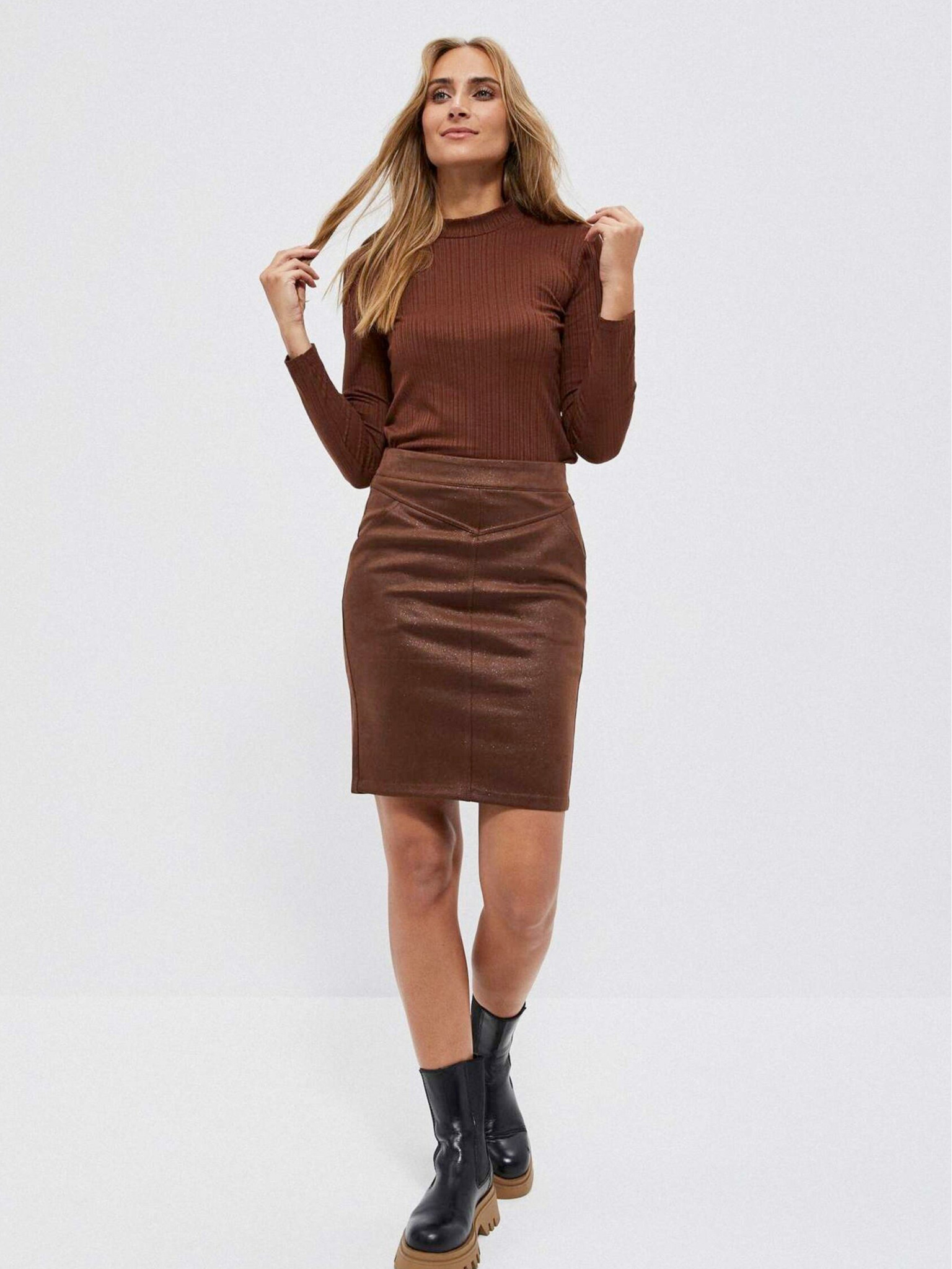 Žebrovaný top s vysokým límcem a vysokým podílem bavlny Marks & Spencer hnědá