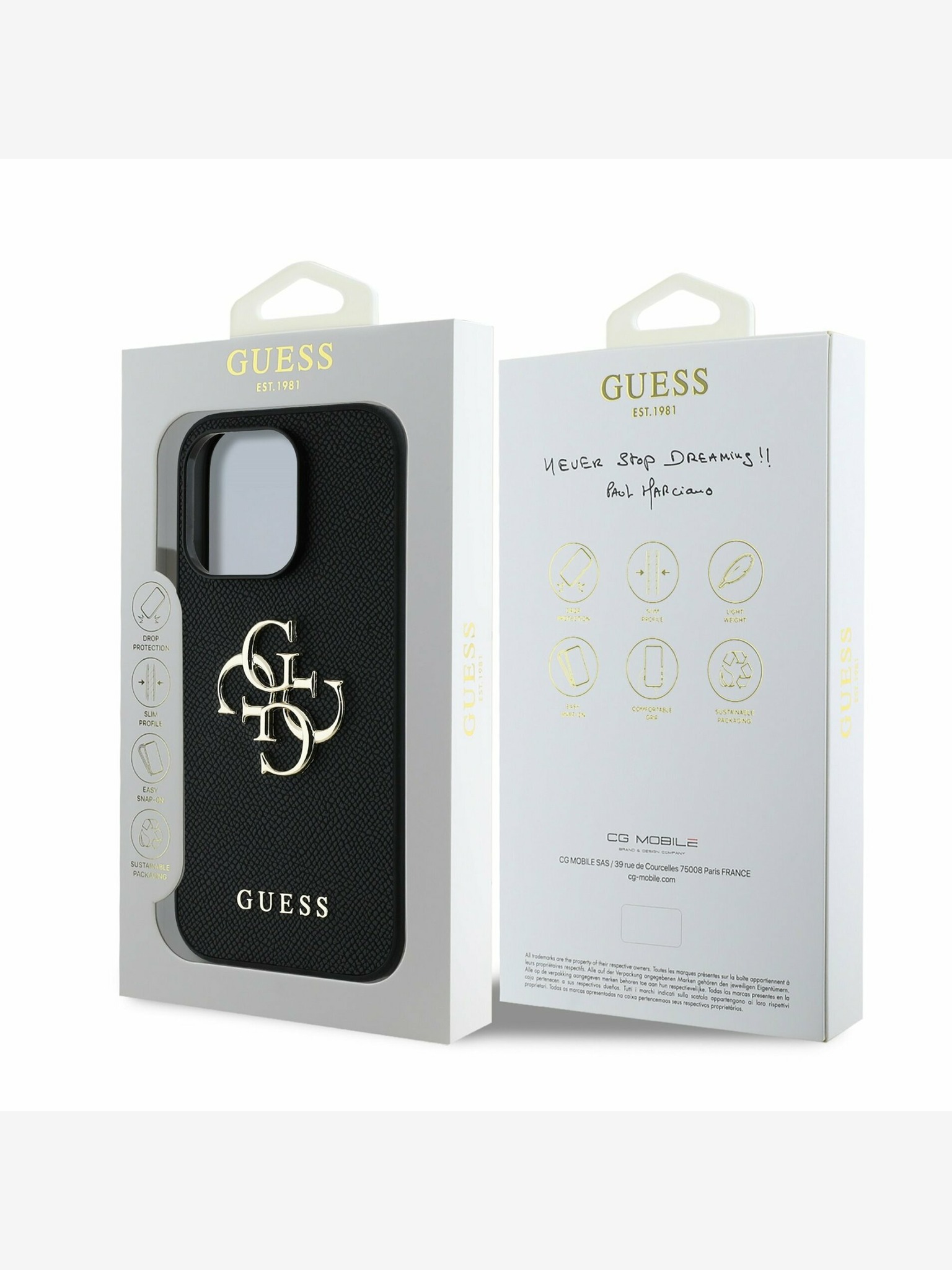 Guess PC/TPU Electroplated Stand Camera Frame MagSafe Zadní Kryt s Vyměnitelným Pozadím pro iPhone 16 Pro