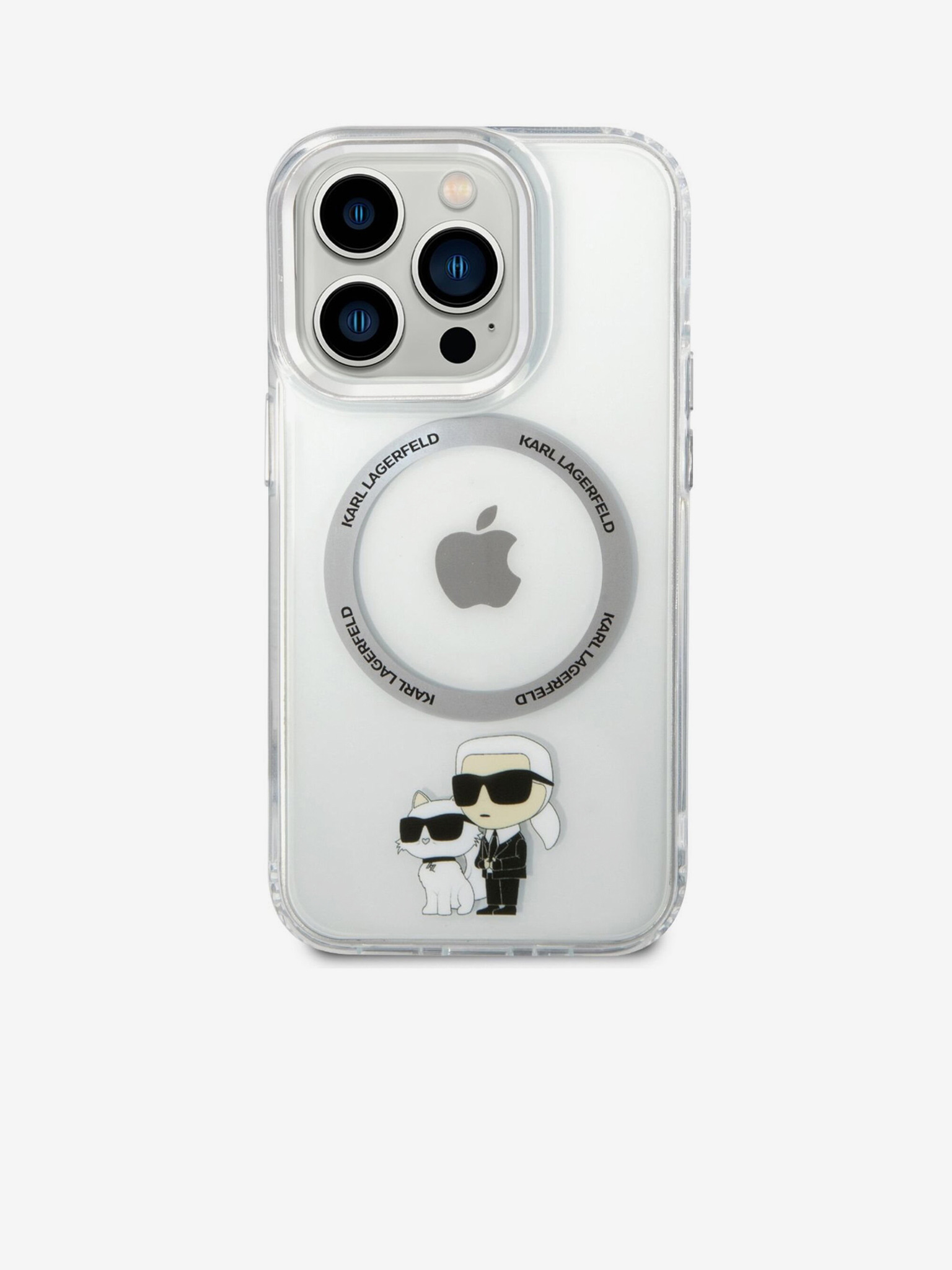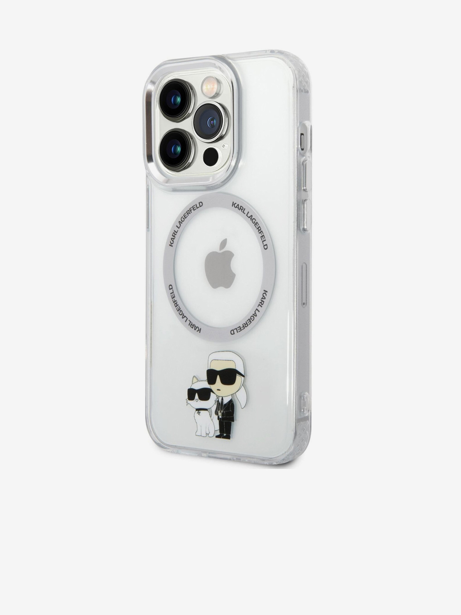 Karl Lagerfeld IML Glitter Karl and Choupette MagSafe Zadní Kryt pro iPhone 15 Pro Max Transparent
