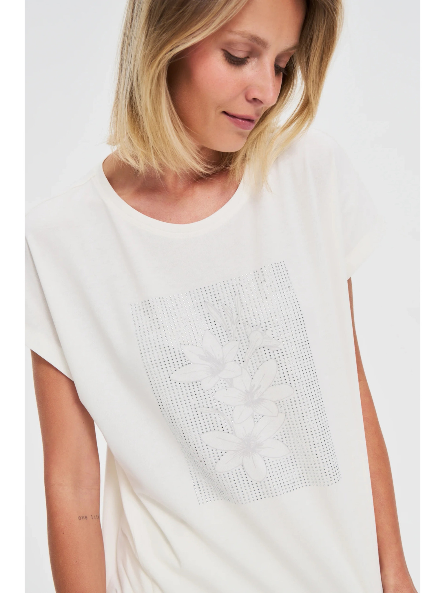Svetr s květinovým vzorem a 3/4 rukávy bílý Moodo