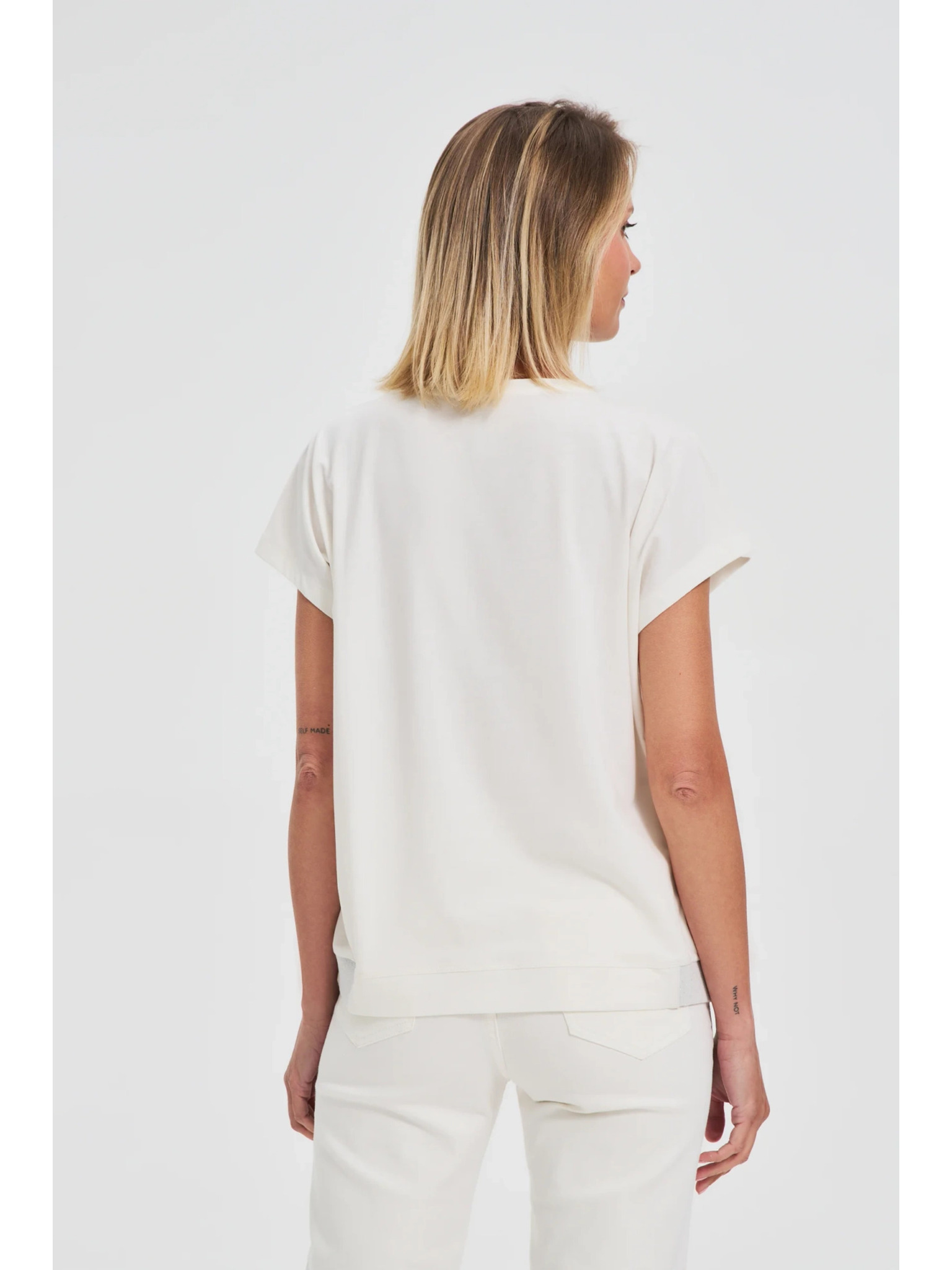 Bílý top se stahováním na rukávech