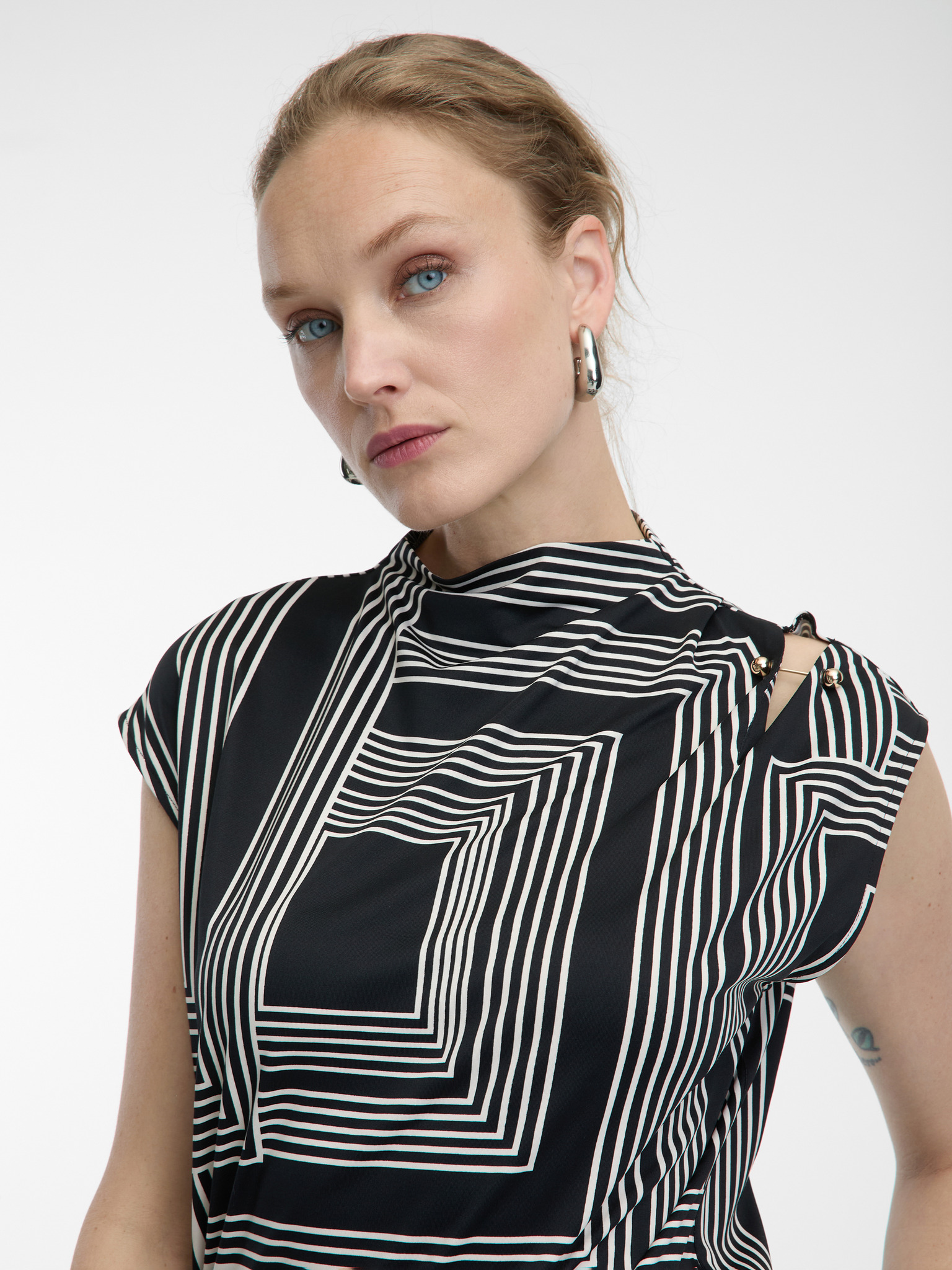 Černobílá halenka bez rukávů
