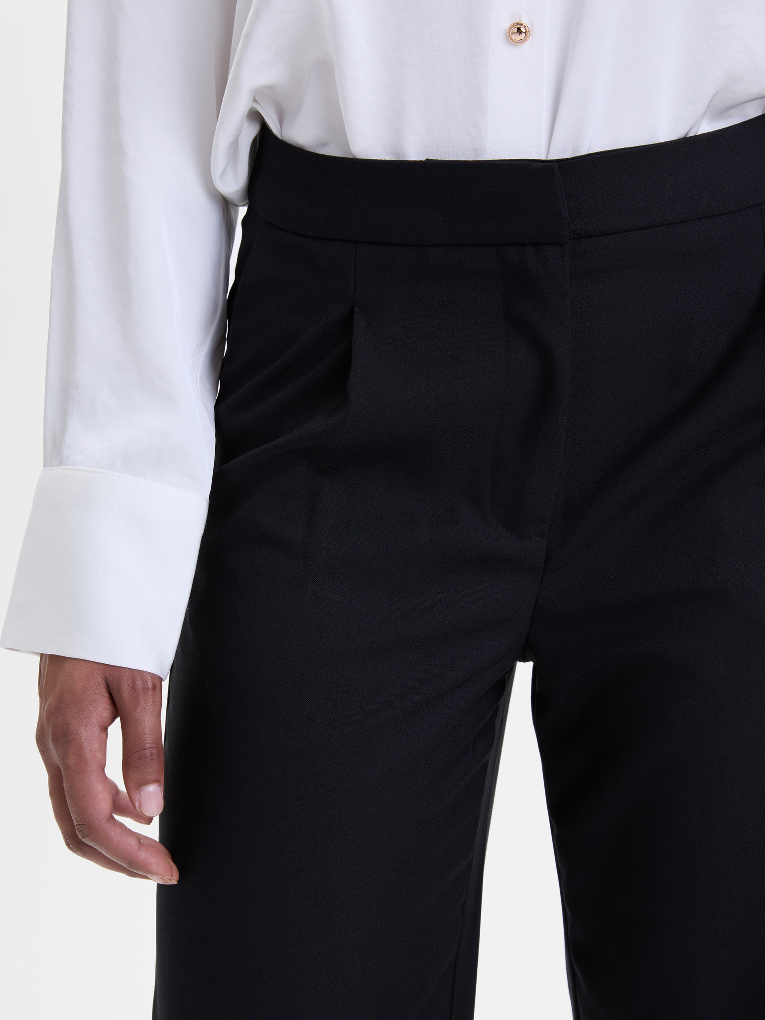 Černé kalhoty se strukturou a páskem Moodo