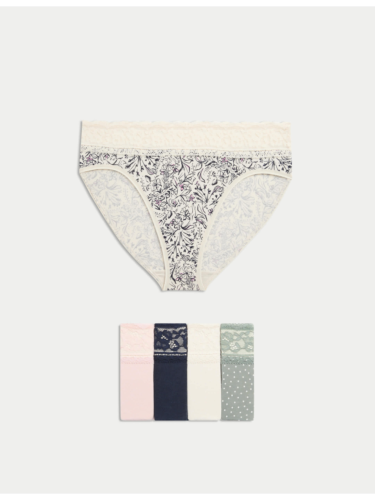 Sada čtyř dámských kalhotek v šedé, bílé a černé barvě Marks & Spencer