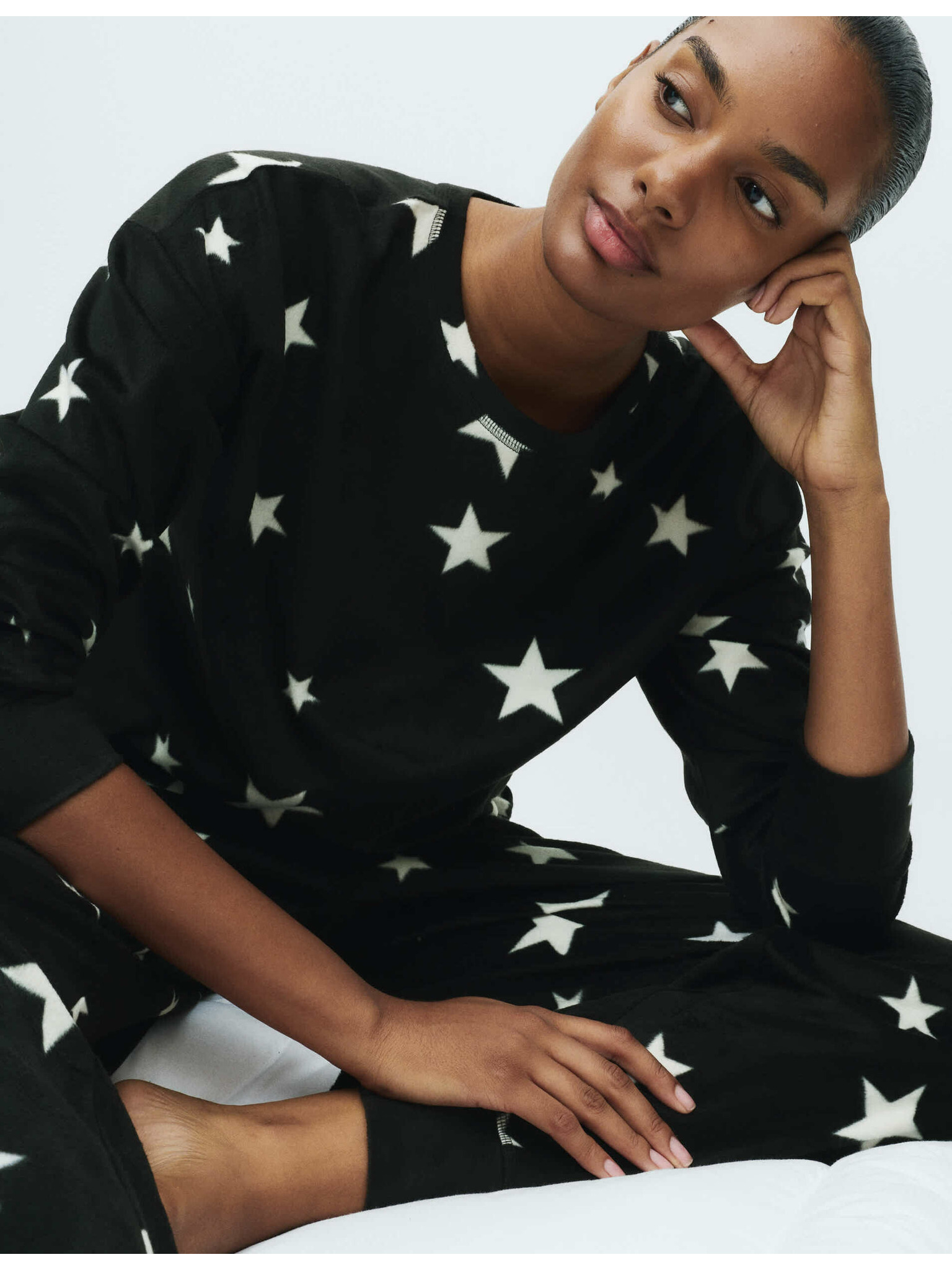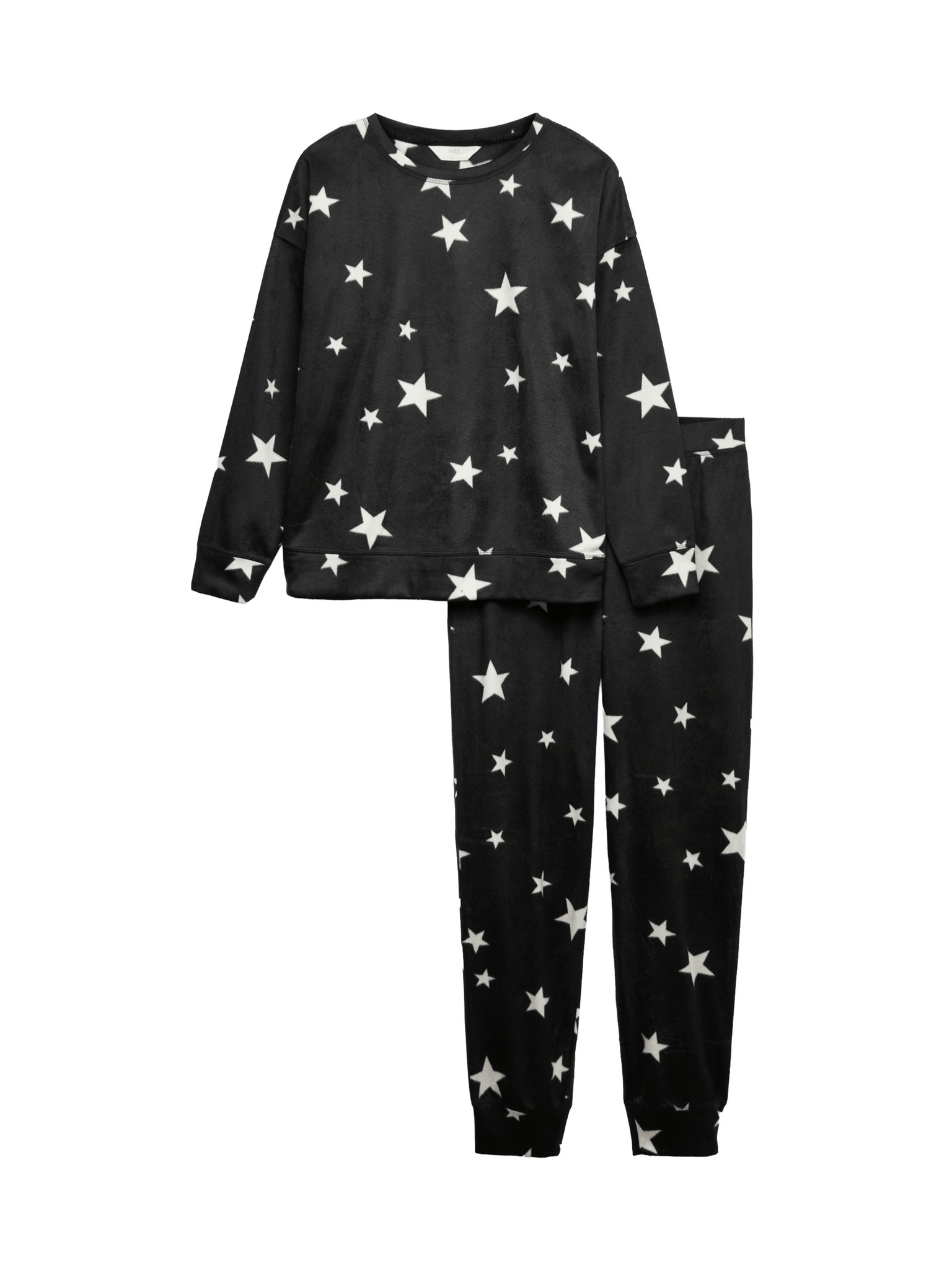 Flísová pyžamová souprava s potiskem hvězd a kalhotami s manžetovým lemem Marks & Spencer růžová