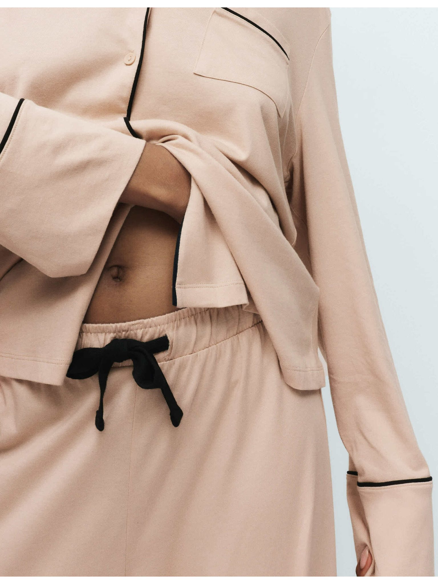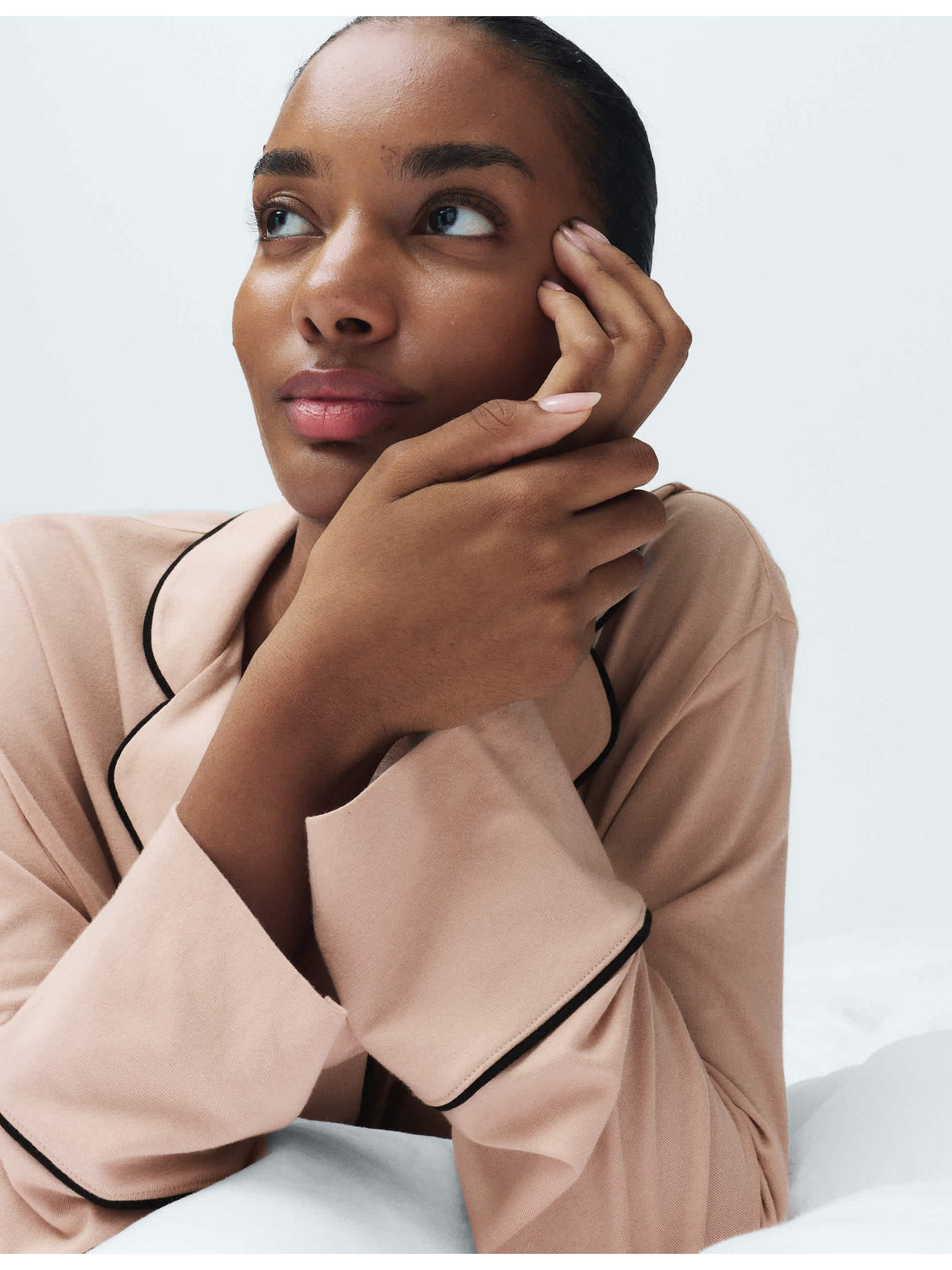 Žebrovaný pyžamový top s výstřihem ke krku a dlouhými rukávy Marks & Spencer smetanová