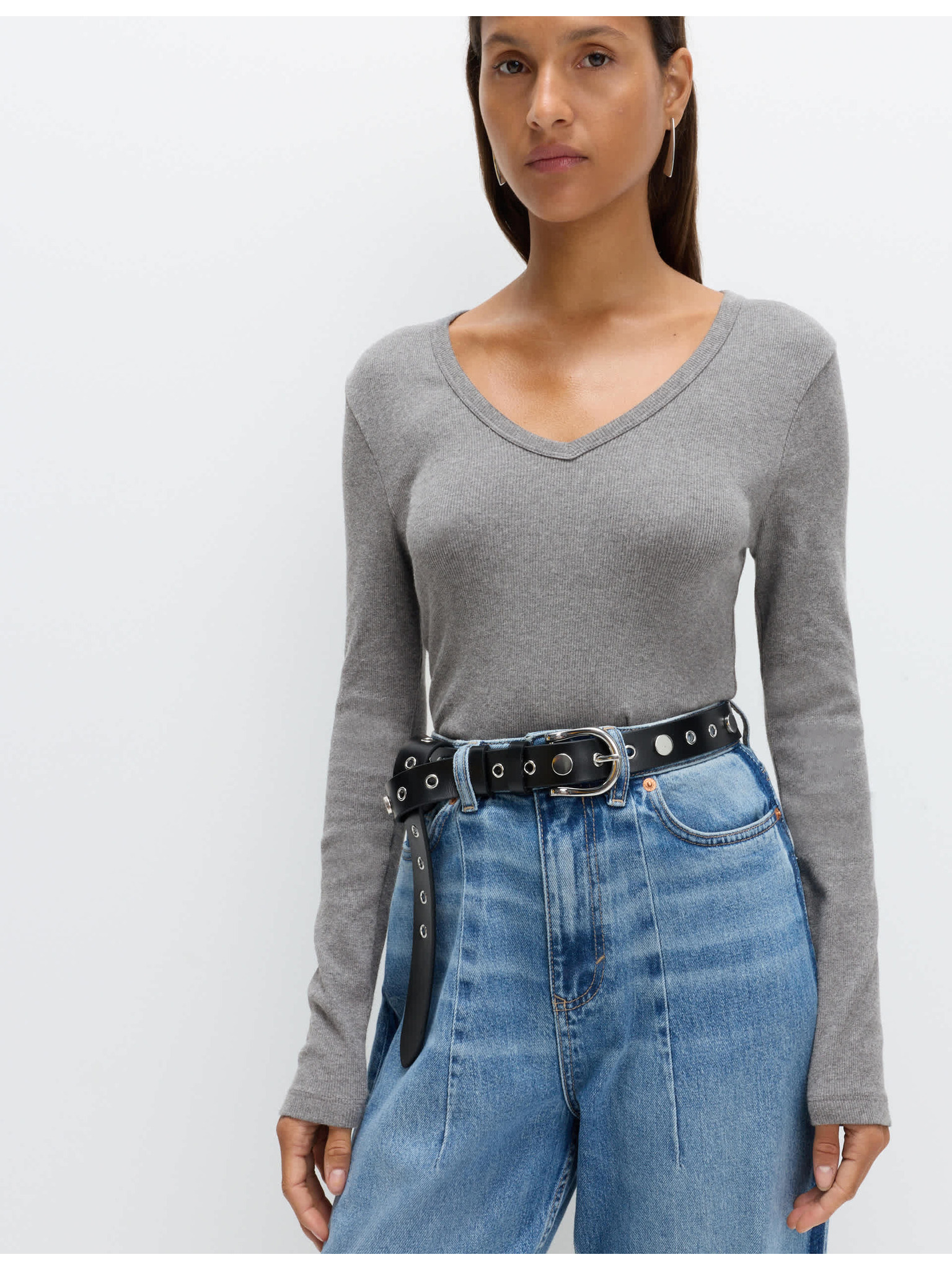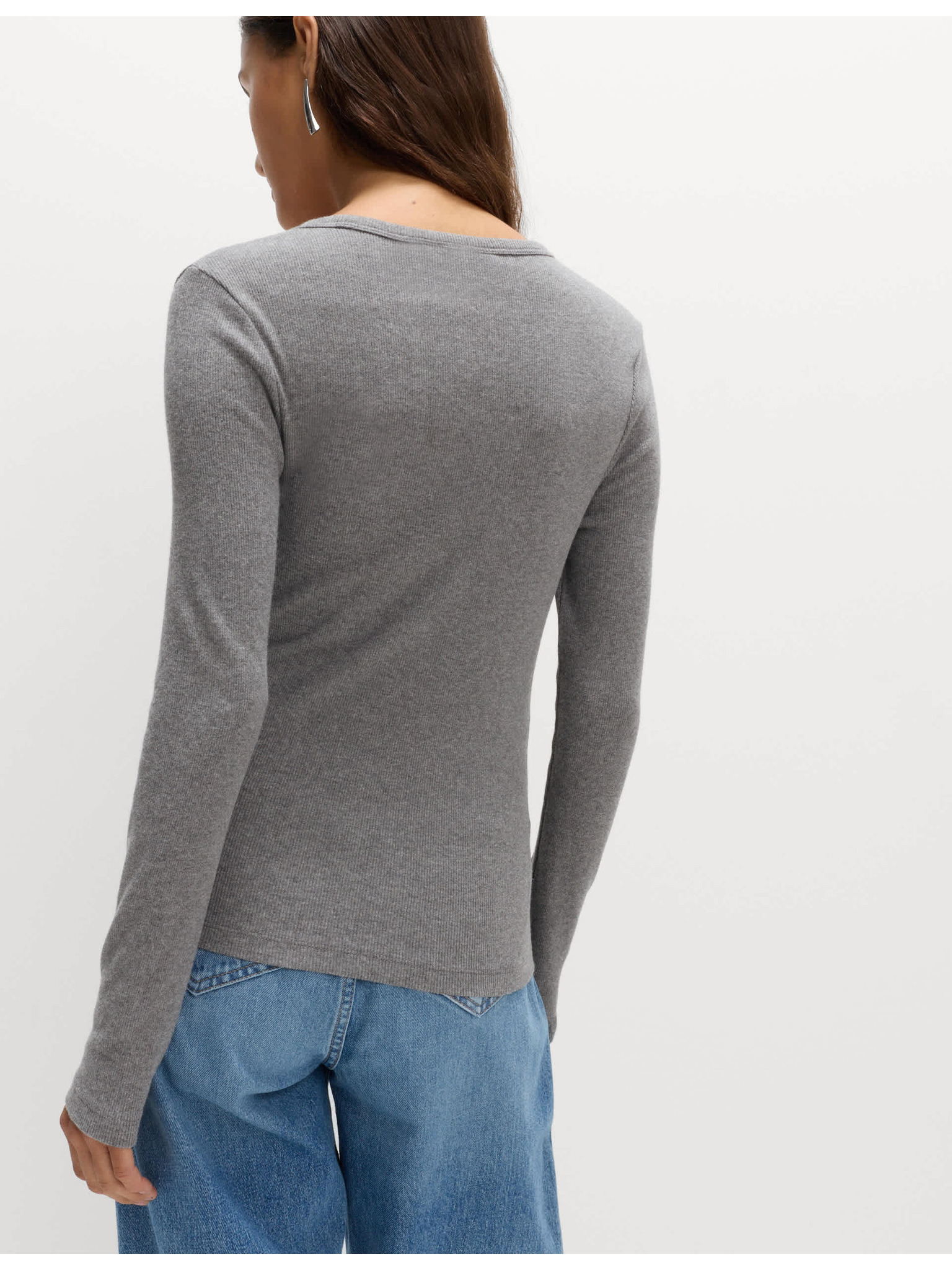 Tmavě šedé dámské žíhané basic tričko s dlouhým rukávem ZOOT.lab Leticia