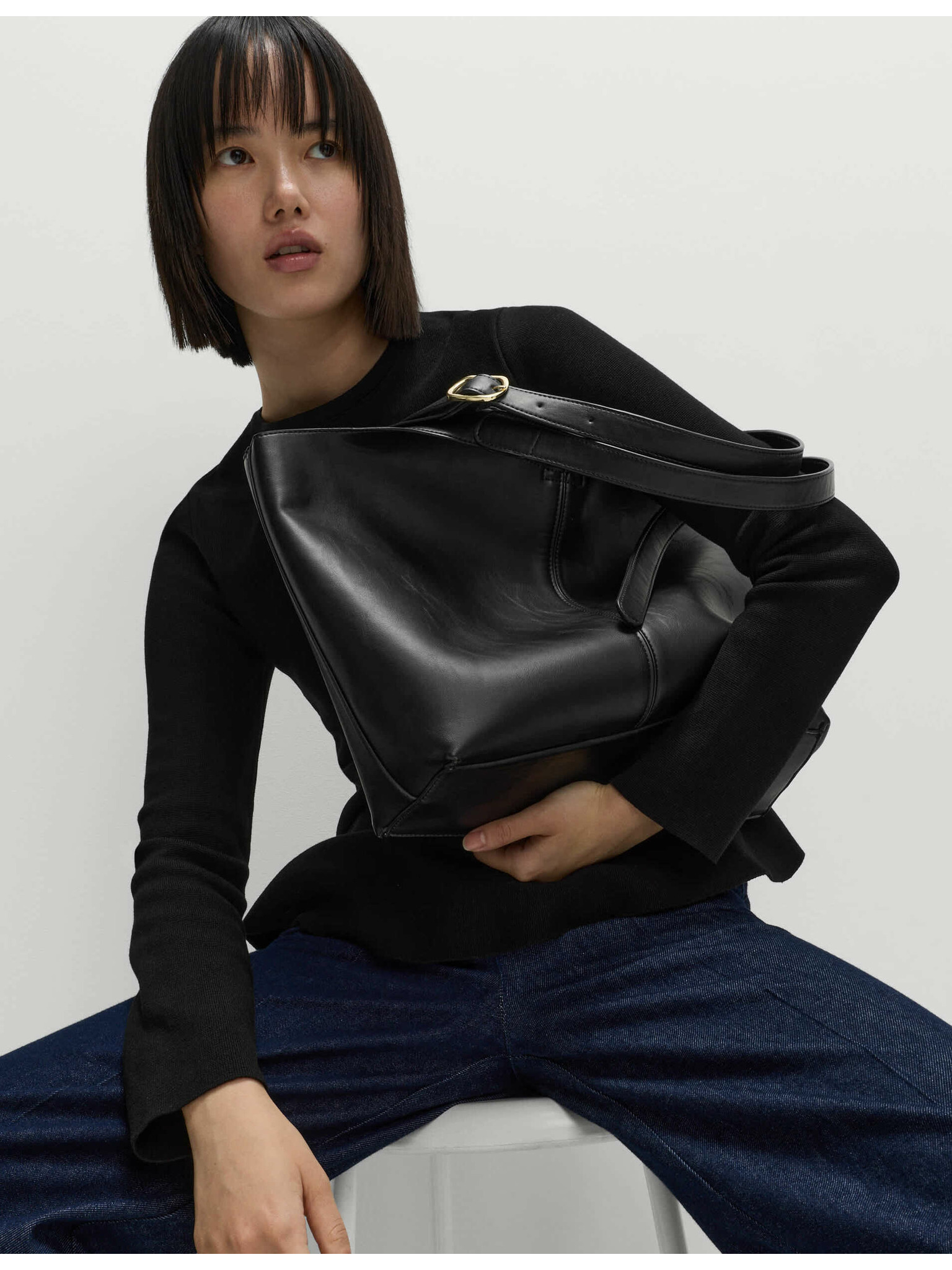 Černý oversize svetr s krátkým rukávem Moodo