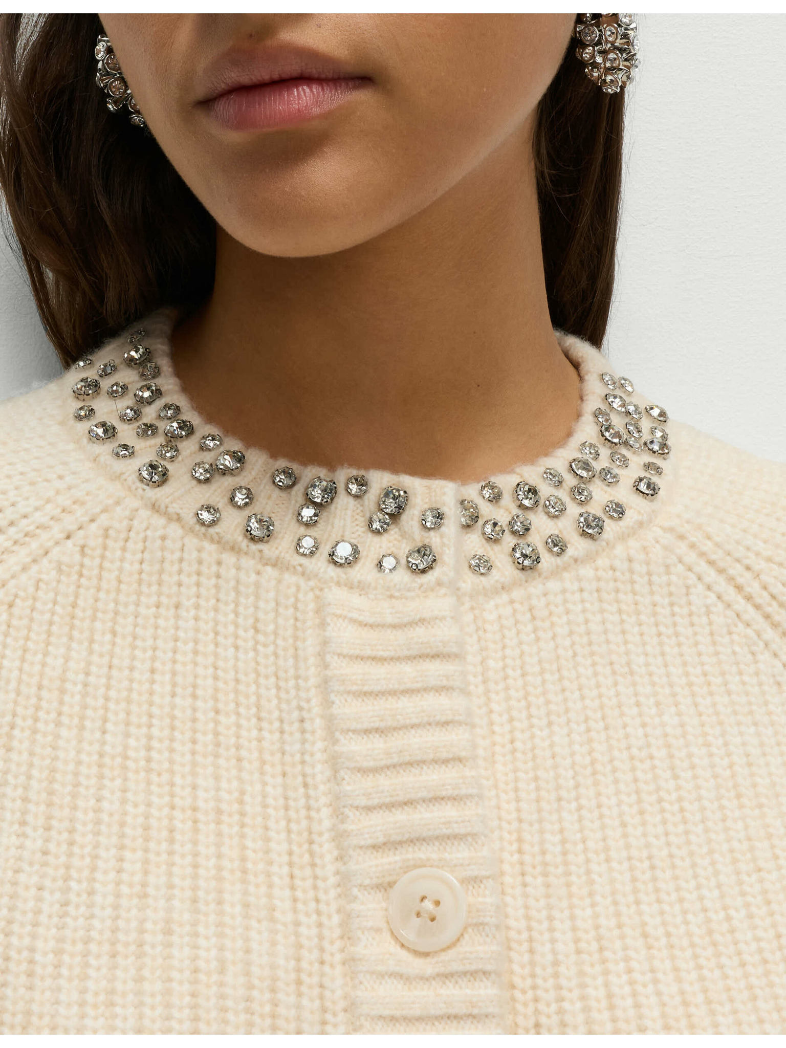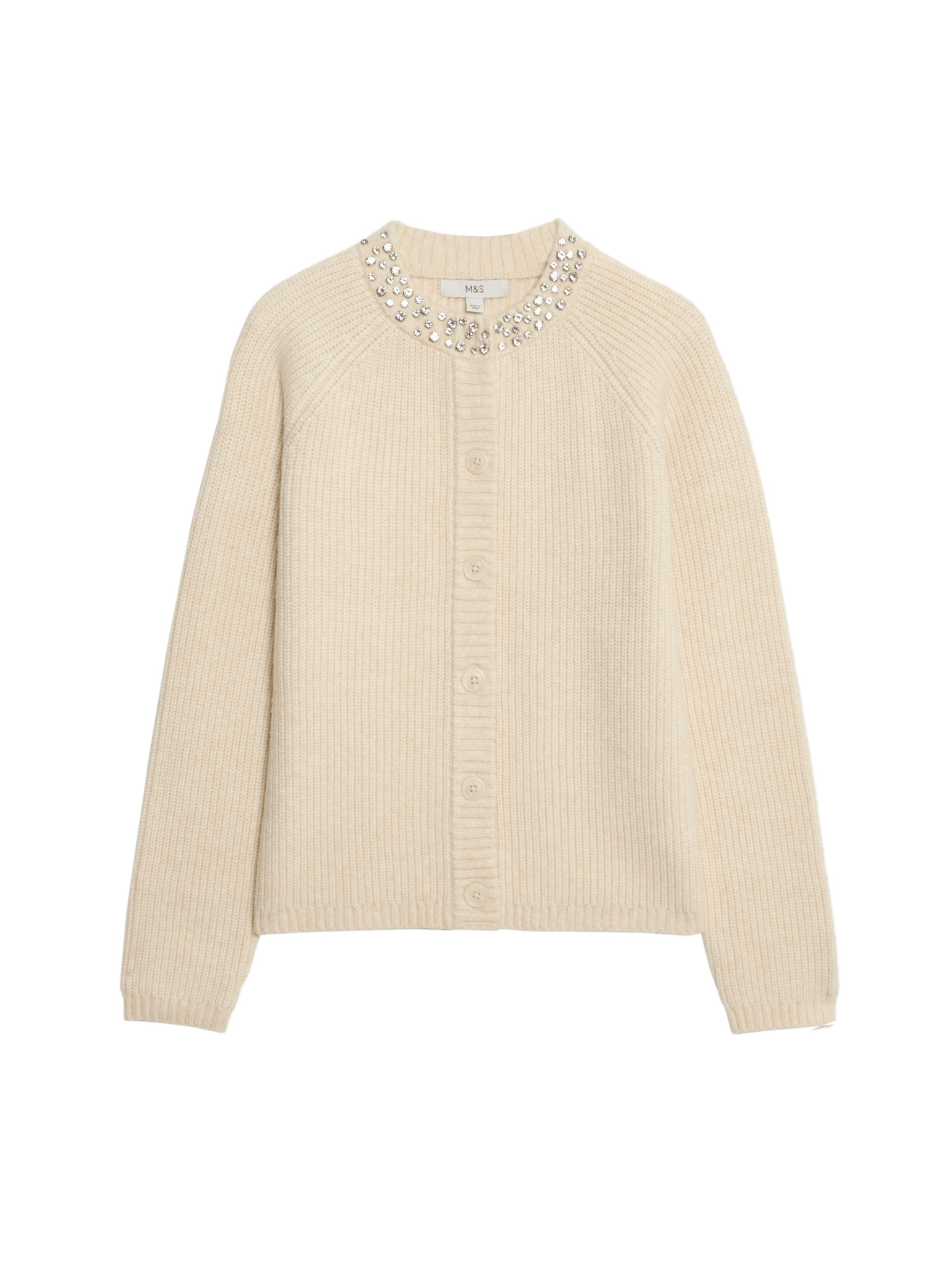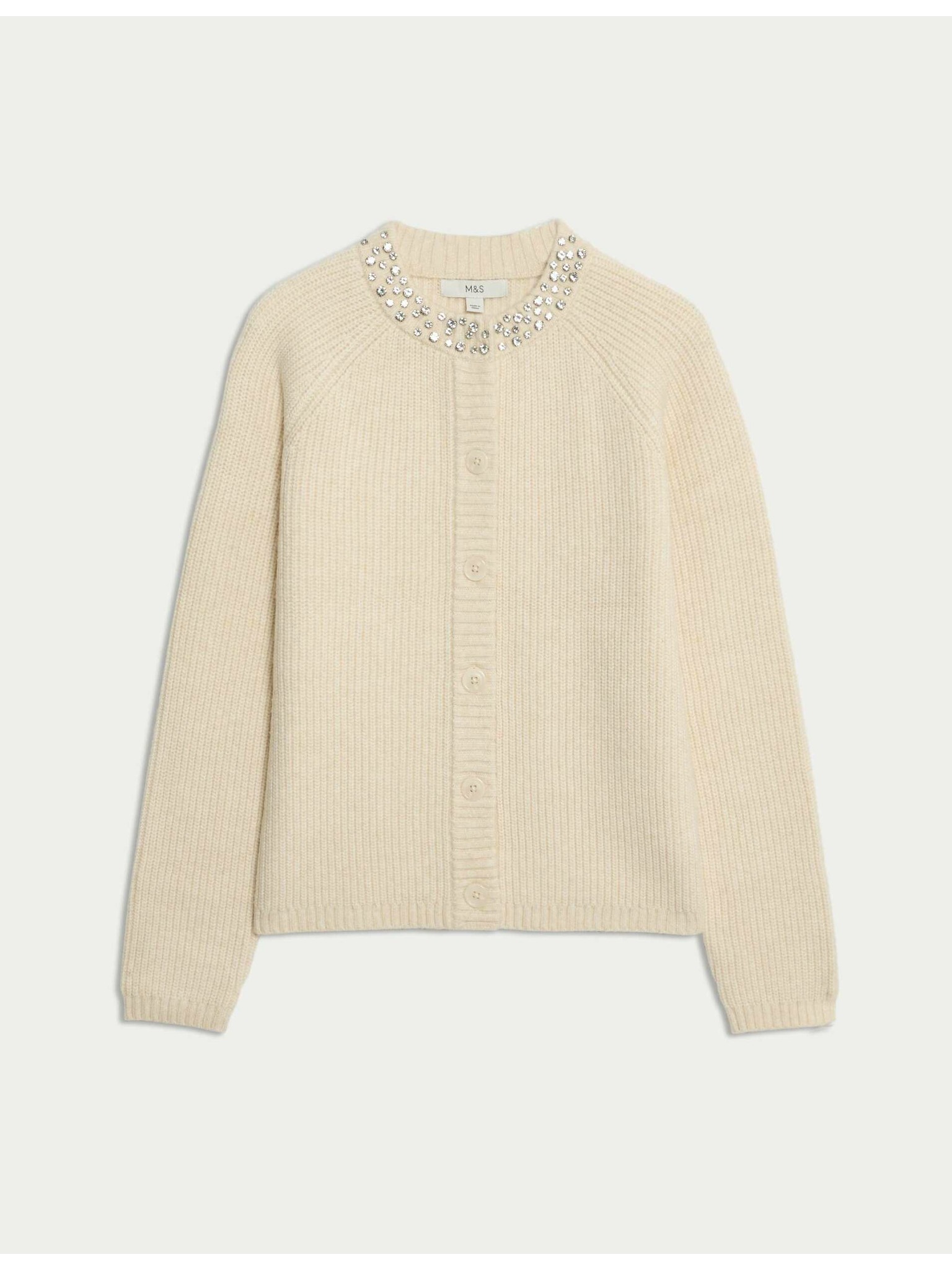 Kardigan s kulatým výstřihem a drahokamy Marks & Spencer šedá