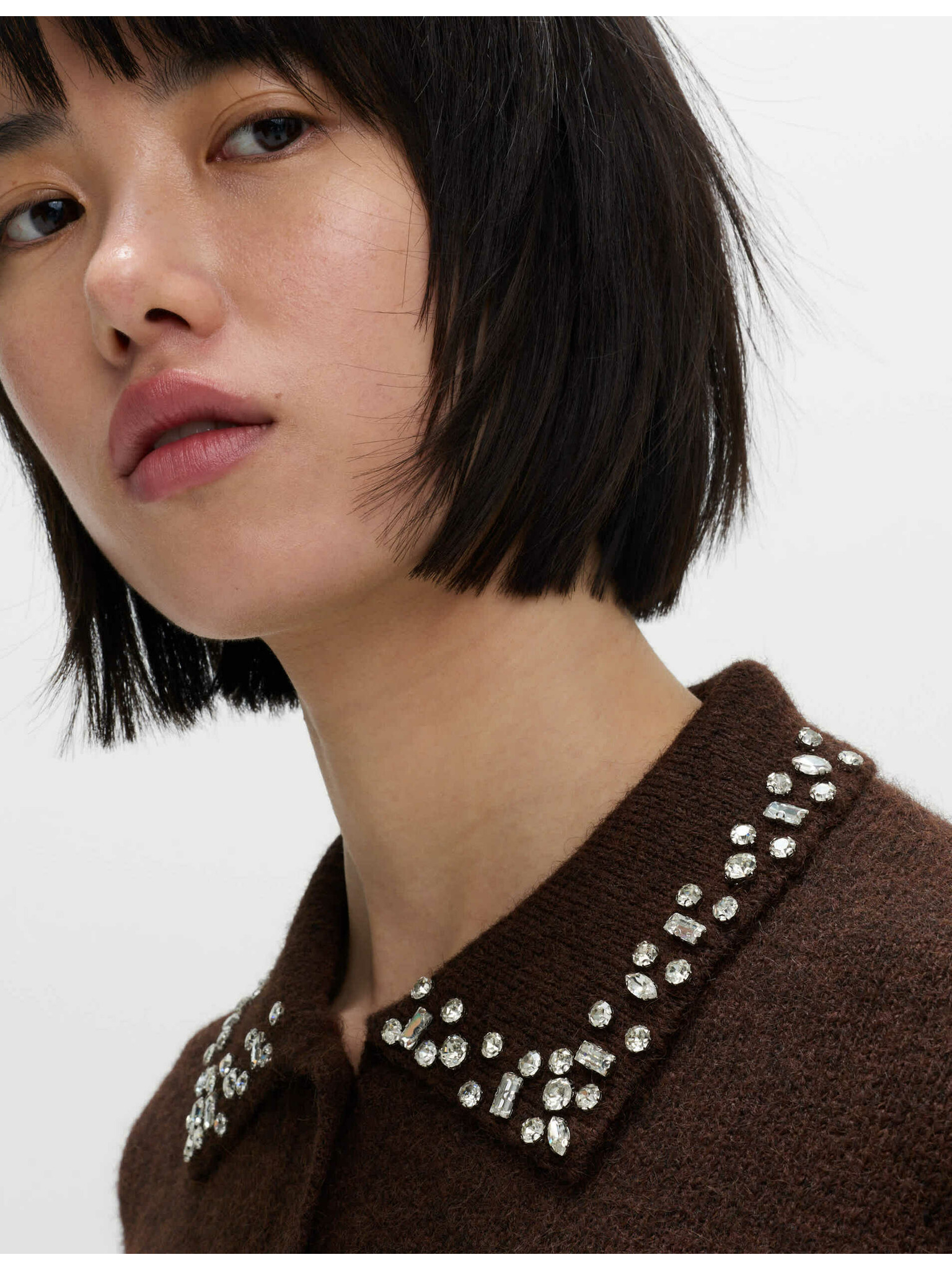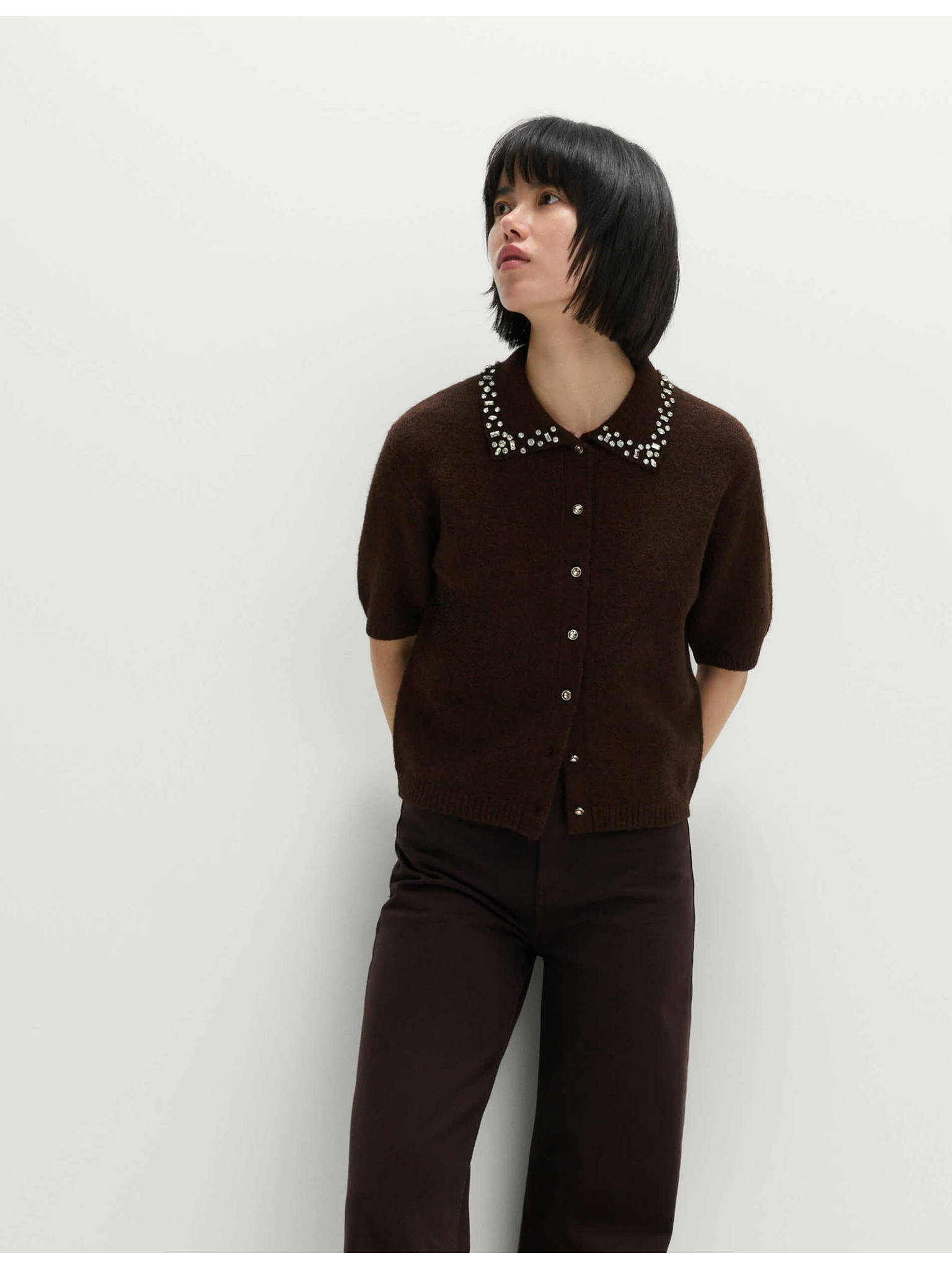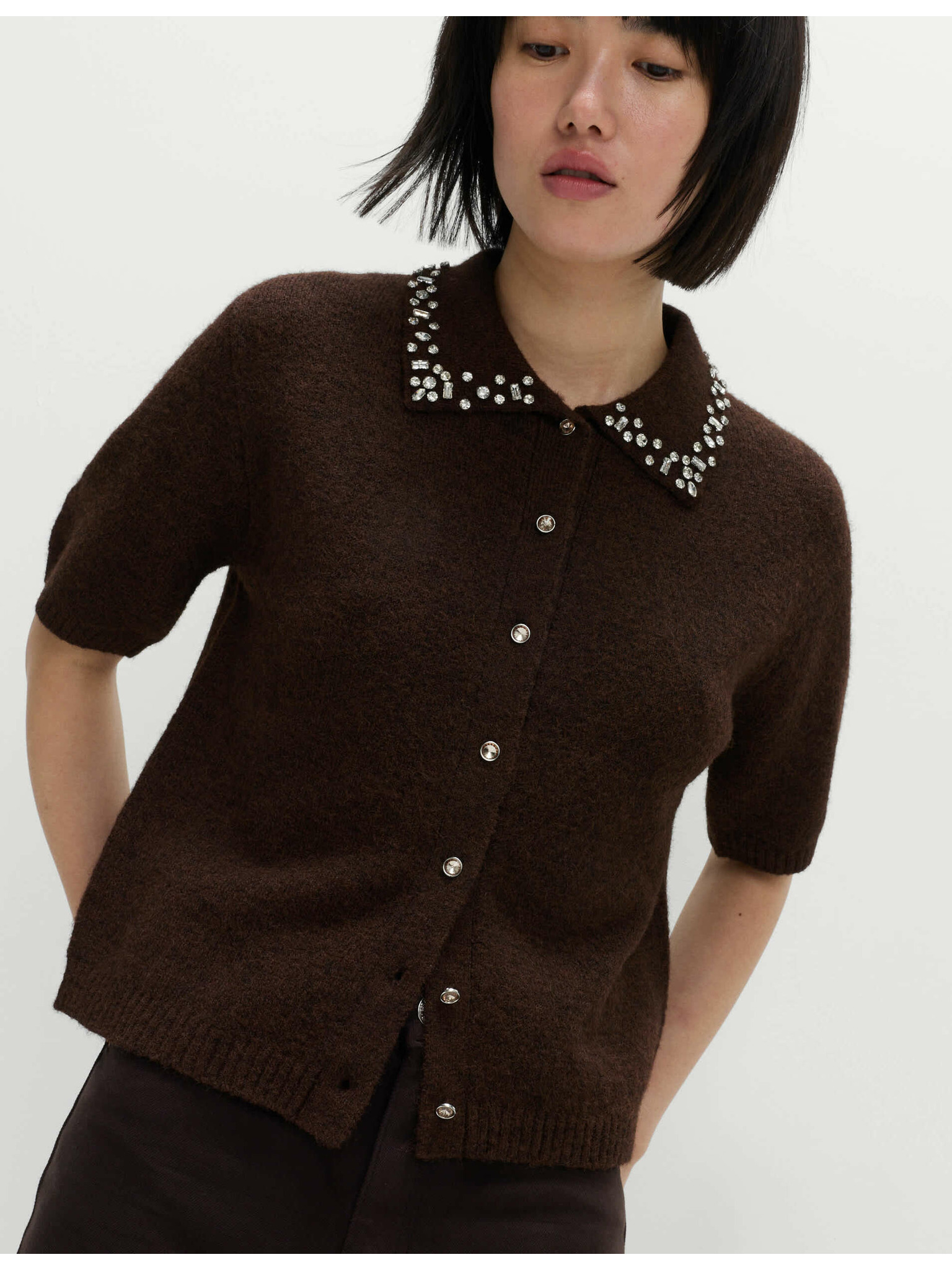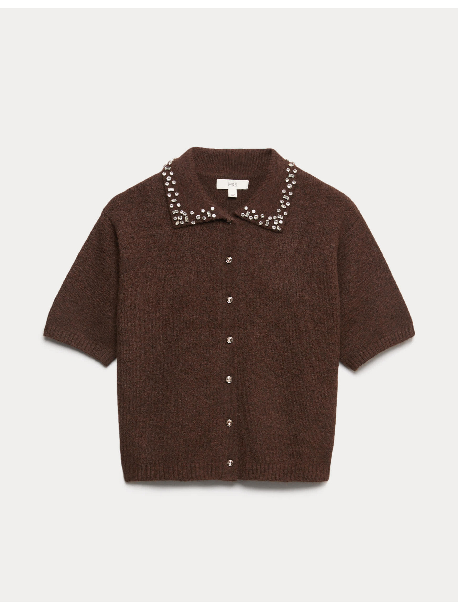 Kardigan s kulatým výstřihem a drahokamy Marks & Spencer šedá