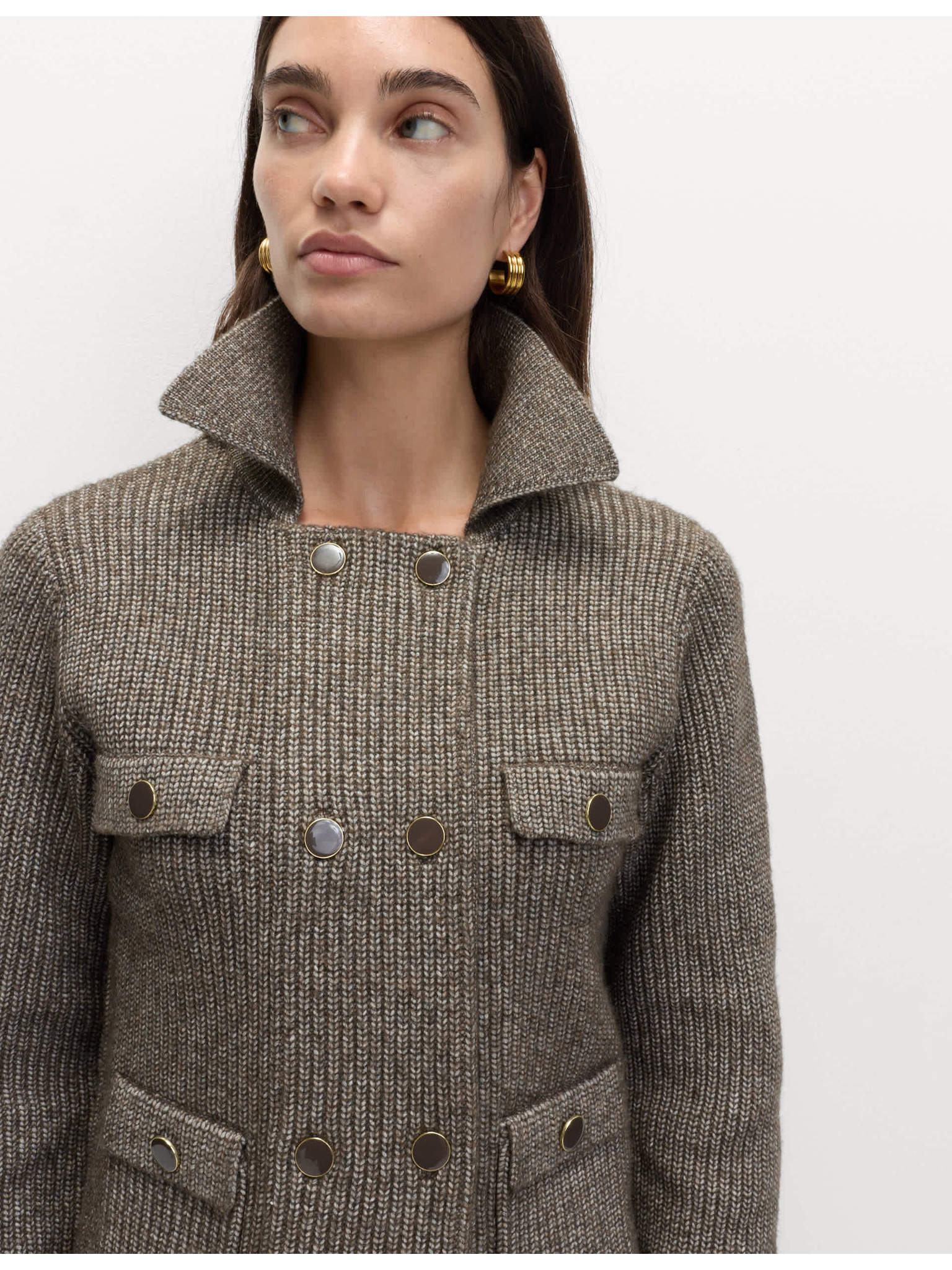 Pletená bunda s mračnatými vlákny a ozdobnými kapsami Marks & Spencer smetanová