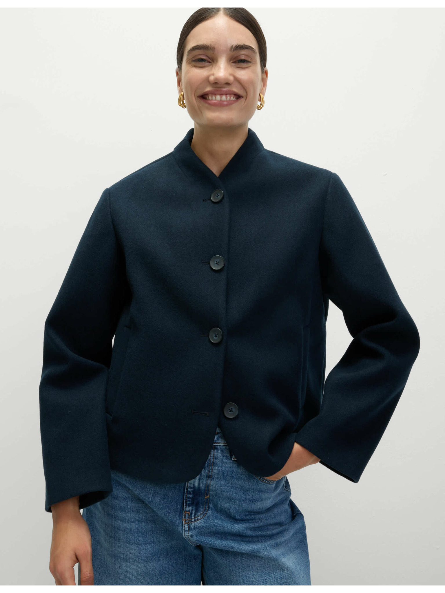 Tmavě modrý dámský krátký kabát ORSAY
