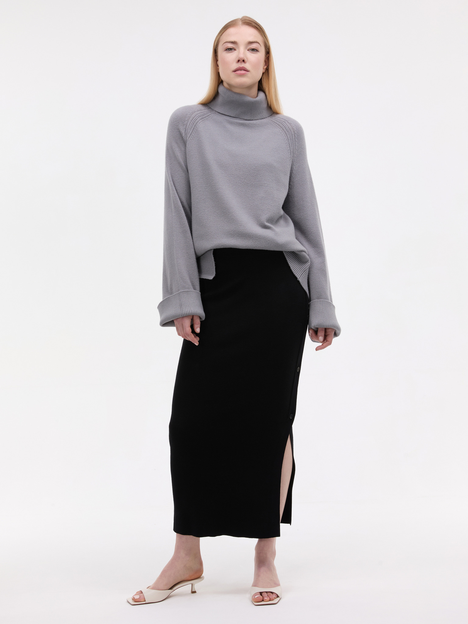 Šedý svetr s rolákem a pruhy Moodo