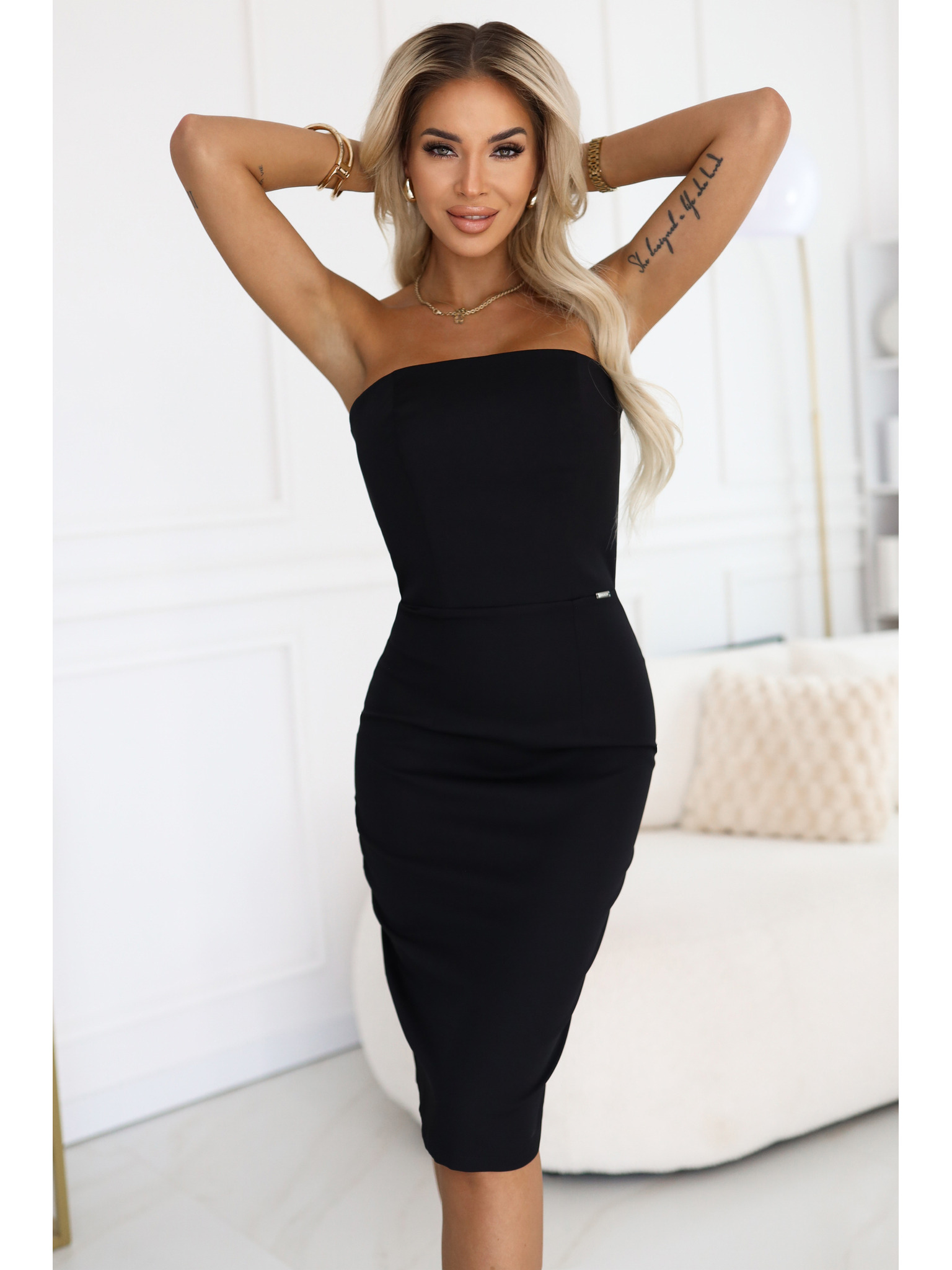 Elegantní midi šaty s volánky - černé Numoco