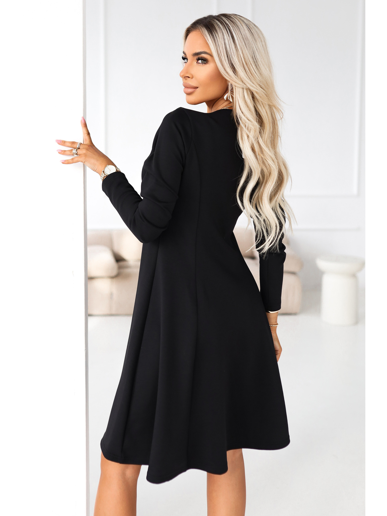Elegantní midi šaty s volánky - černé Numoco