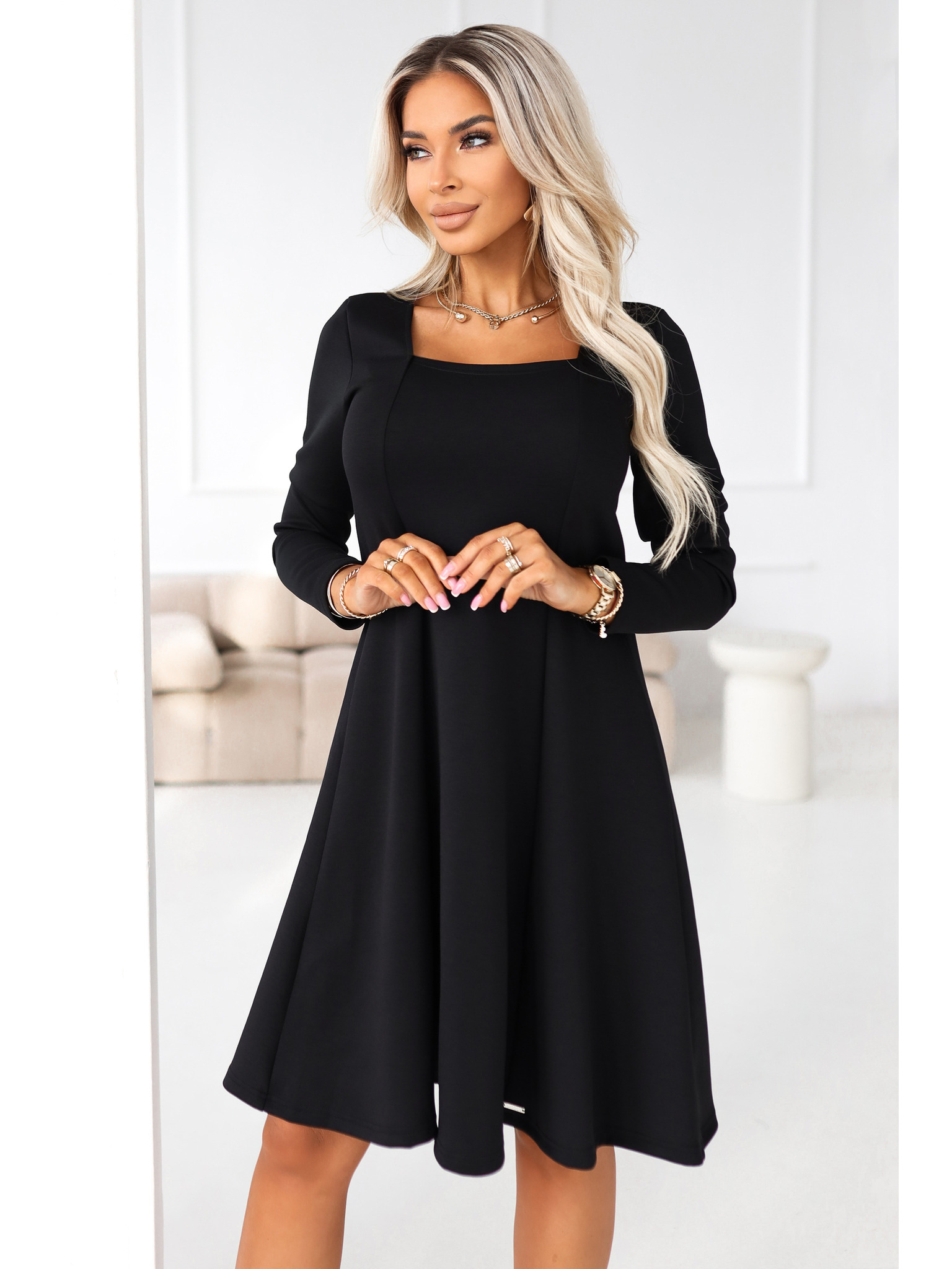 Rozšířené šaty s výstřihem - béžová barva Numoco SCARLETT