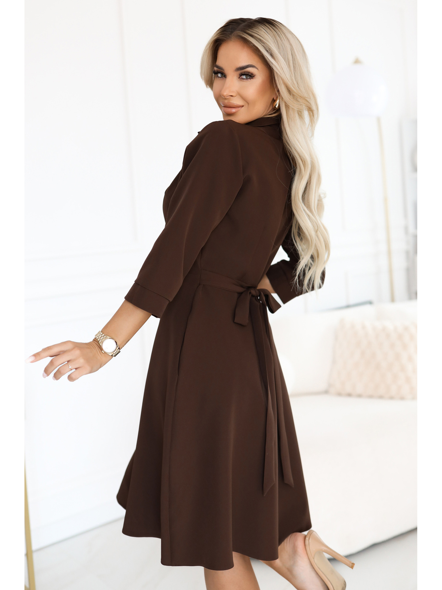 CAMILLE Košilové šaty s kapsami a zavazováním