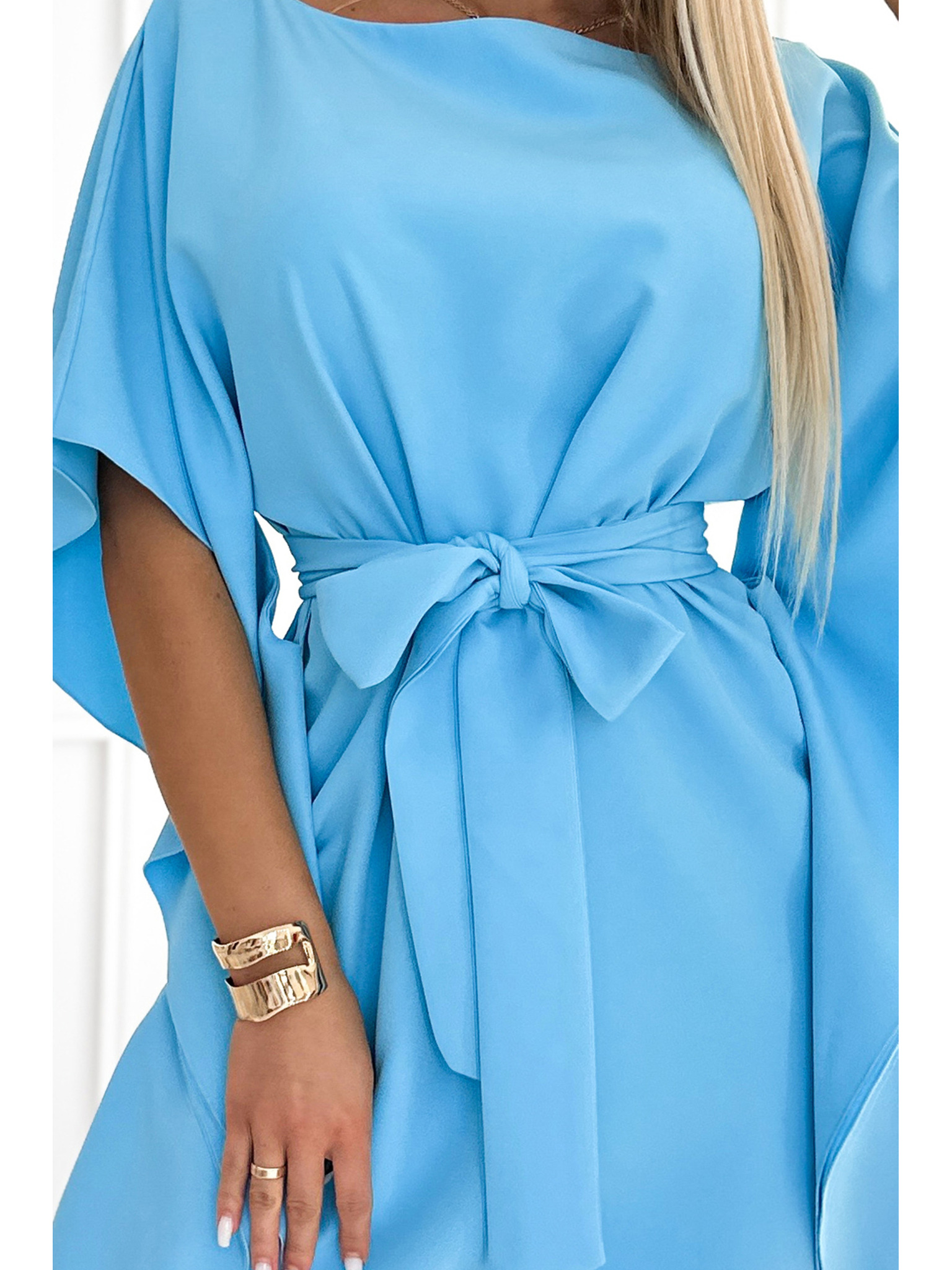 Rozevláté šaty s malými rukávy - barva moře Numoco