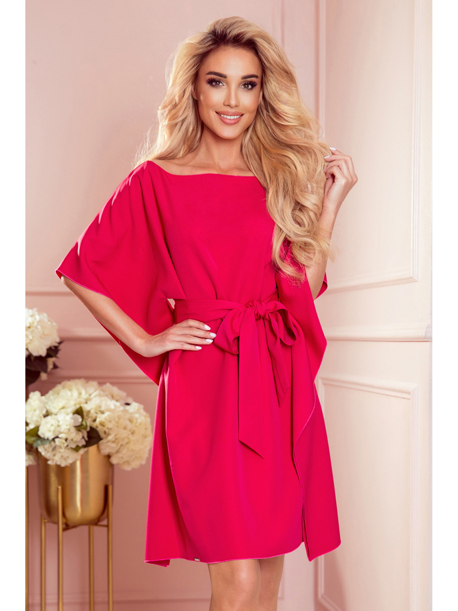 Rozšířené šaty s výstřihem - práškově růžové Numoco SCARLETT