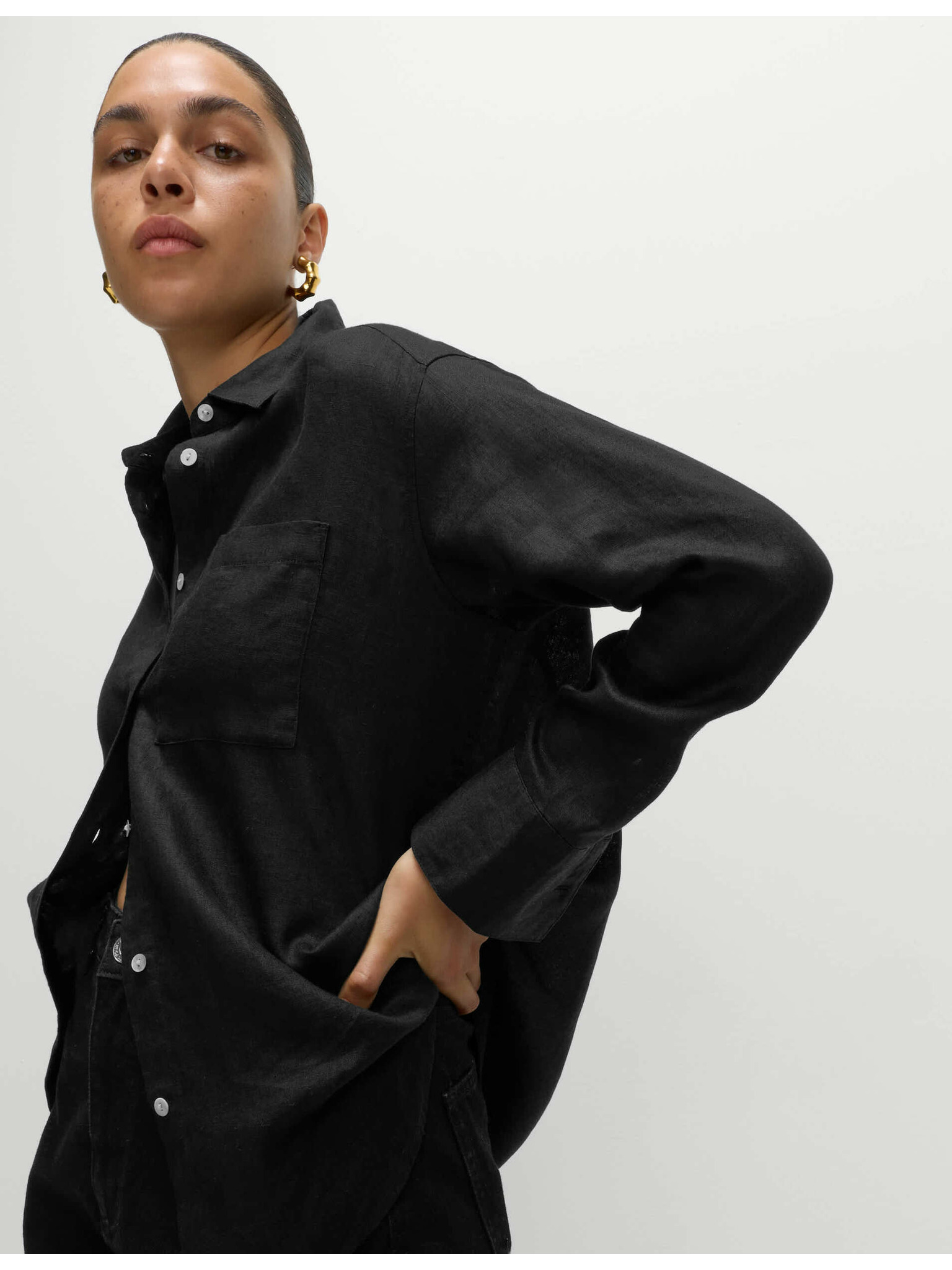 Oversized košile ve stylu Girlfriend s límečkem, z čistého lnu Marks & Spencer bílá